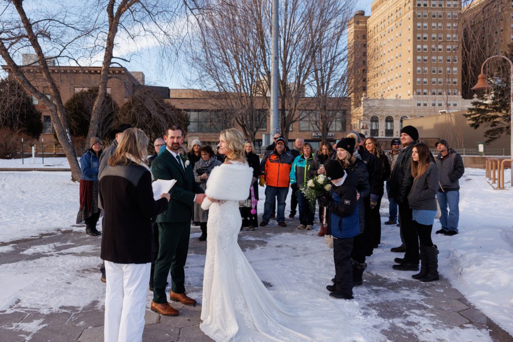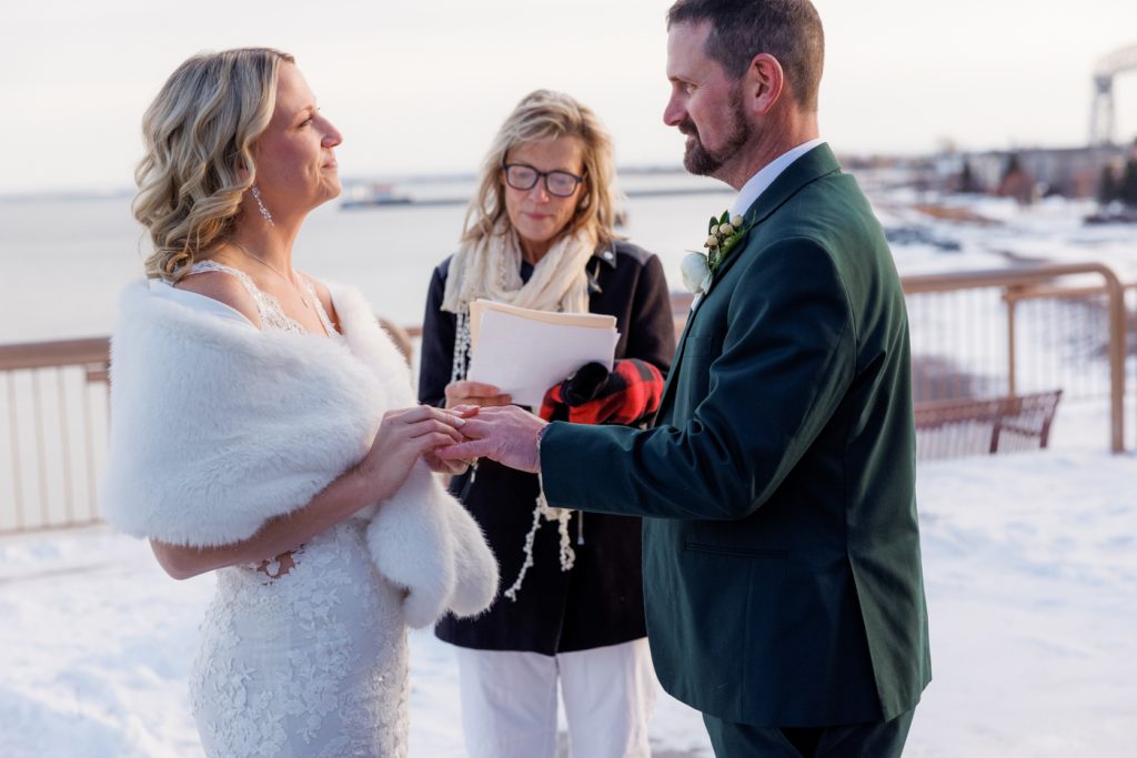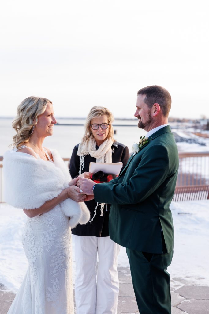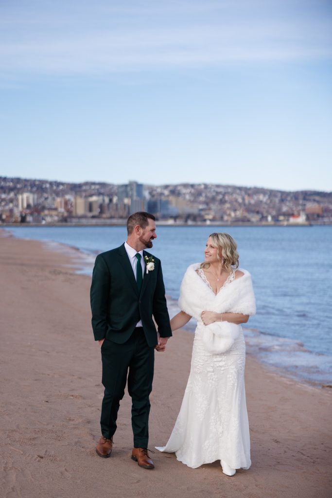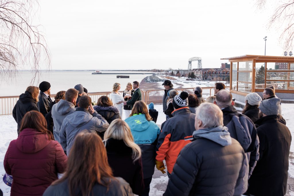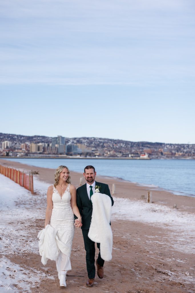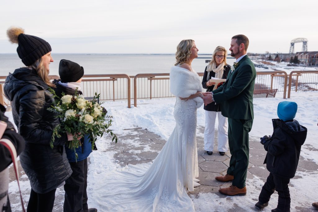 Congratulations Patty and Kyle! What a perfect winter wedding in Duluth, Minnesota. The bride and groom got ready at the Sheraton Hotel downtown Duluth. The wedding ceremony was outdoors on this beautiful December day, overlooking Lake Superior. Beau had fun venturing around Duluth with the newlyweds after they tied the knot. Enjoy the memories!