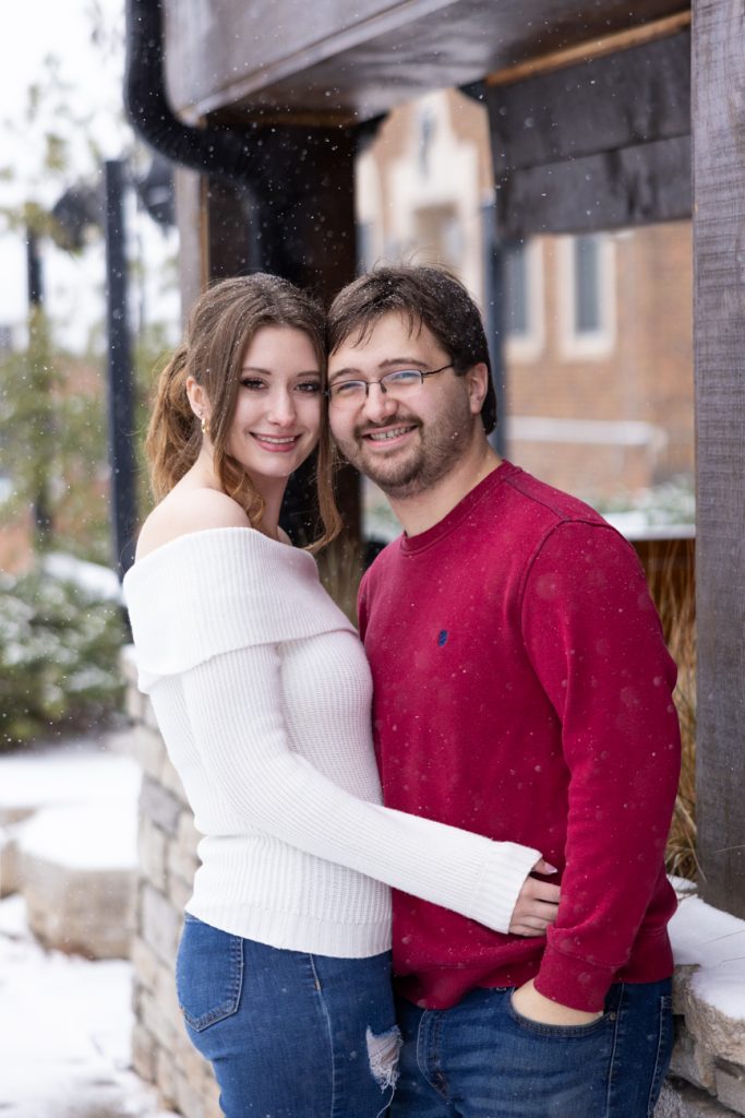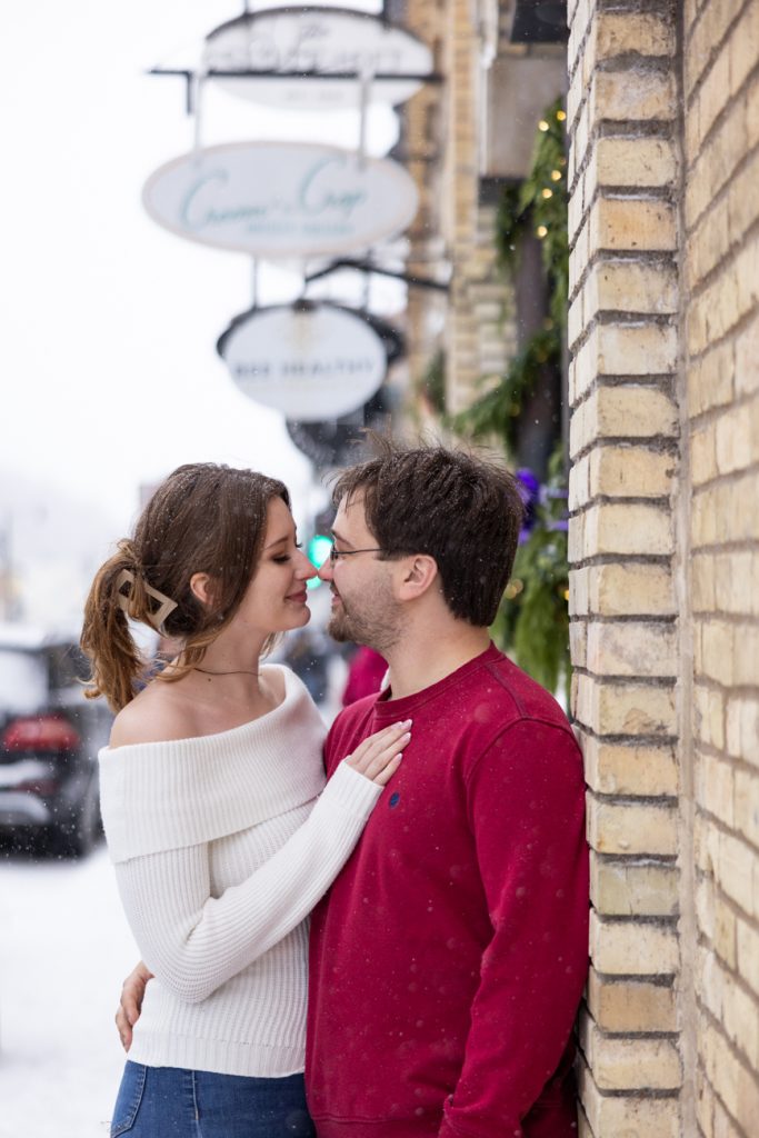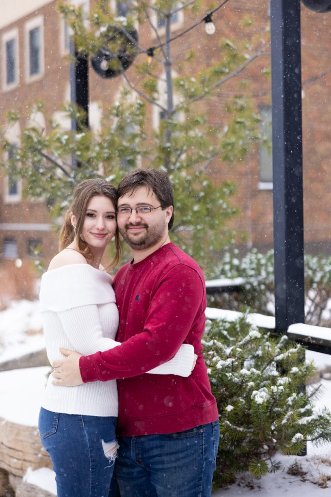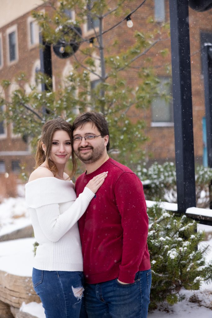 Congratulations Sammi and Mason! What a fun snowy session in downtown Hudson, Wisconsin. I love the big snowflakes falling and the warm cozy feeling these images show.