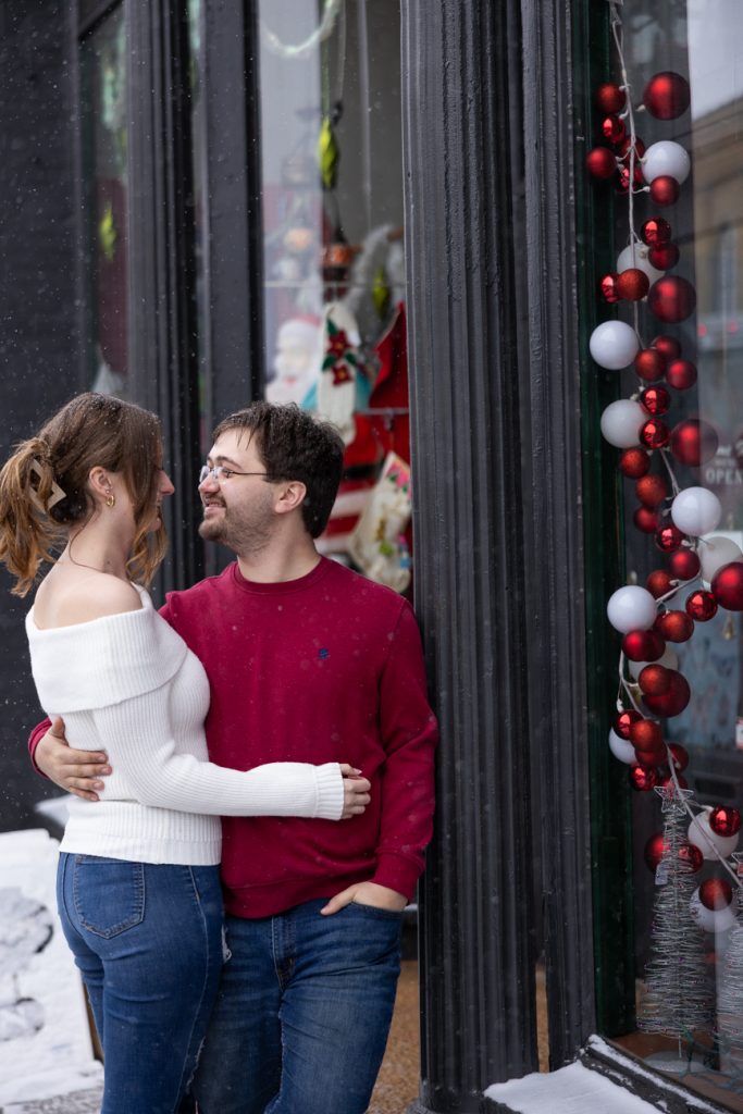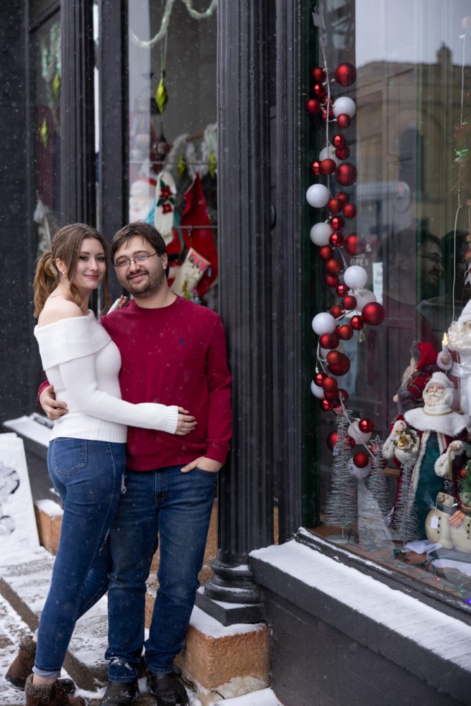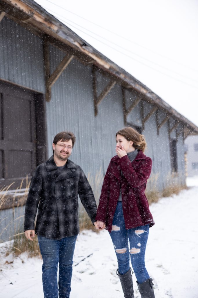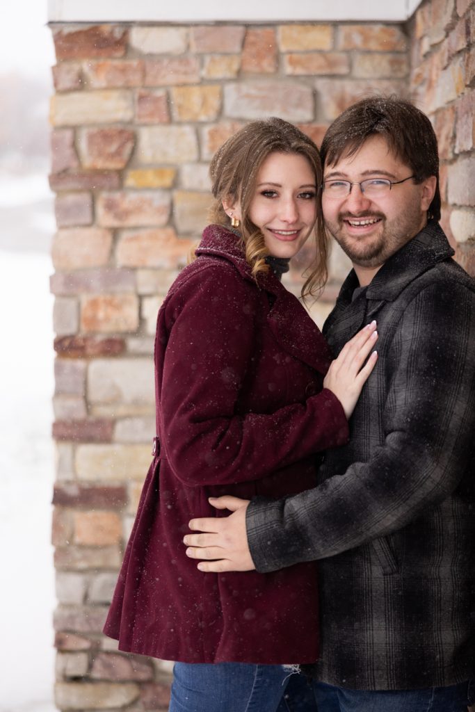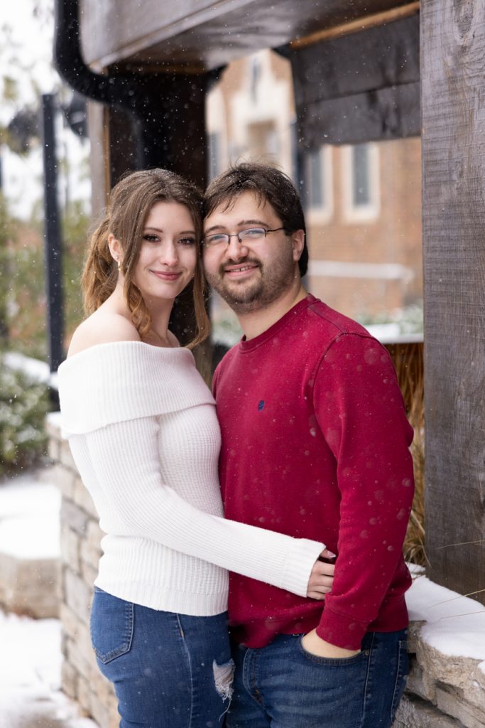 Congratulations Sammi and Mason! What a fun snowy session in downtown Hudson, Wisconsin. I love the big snowflakes falling and the warm cozy feeling these images show.