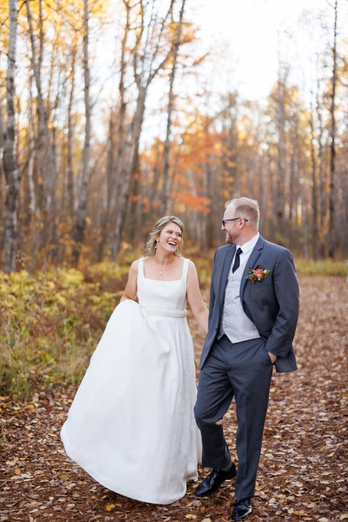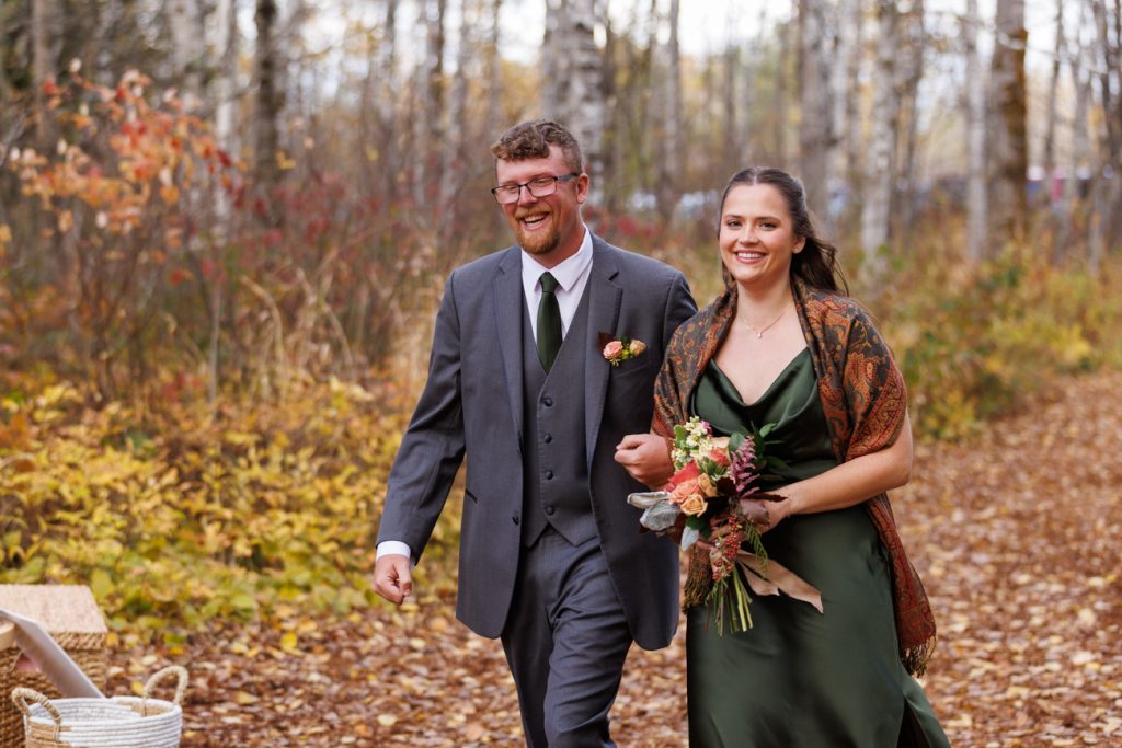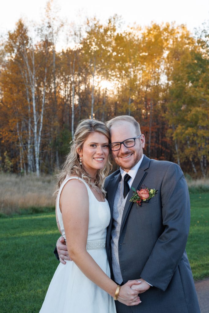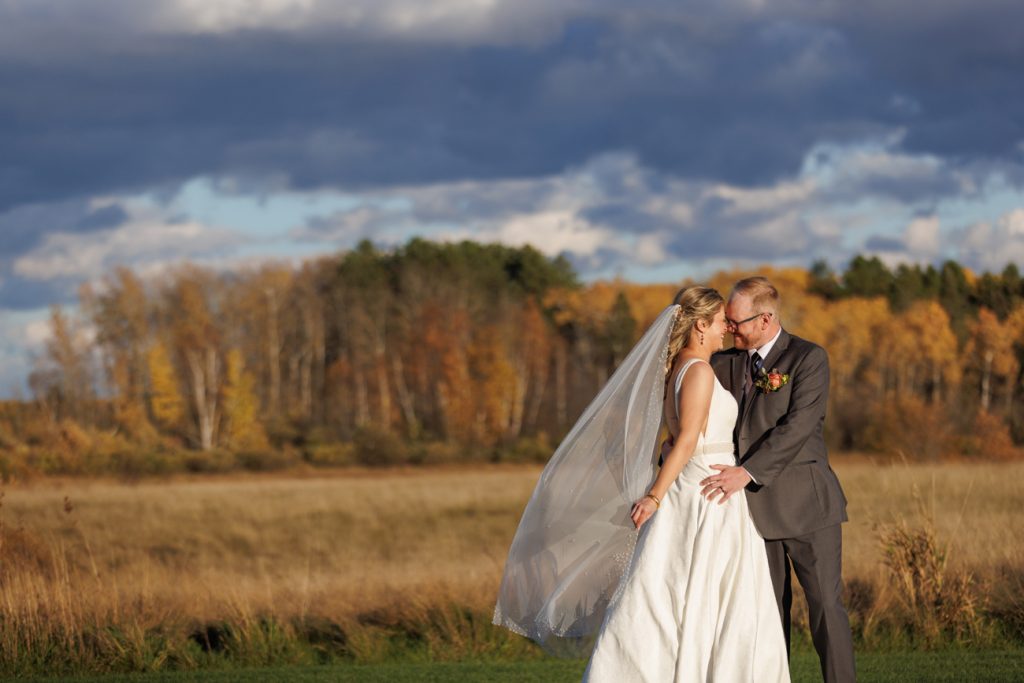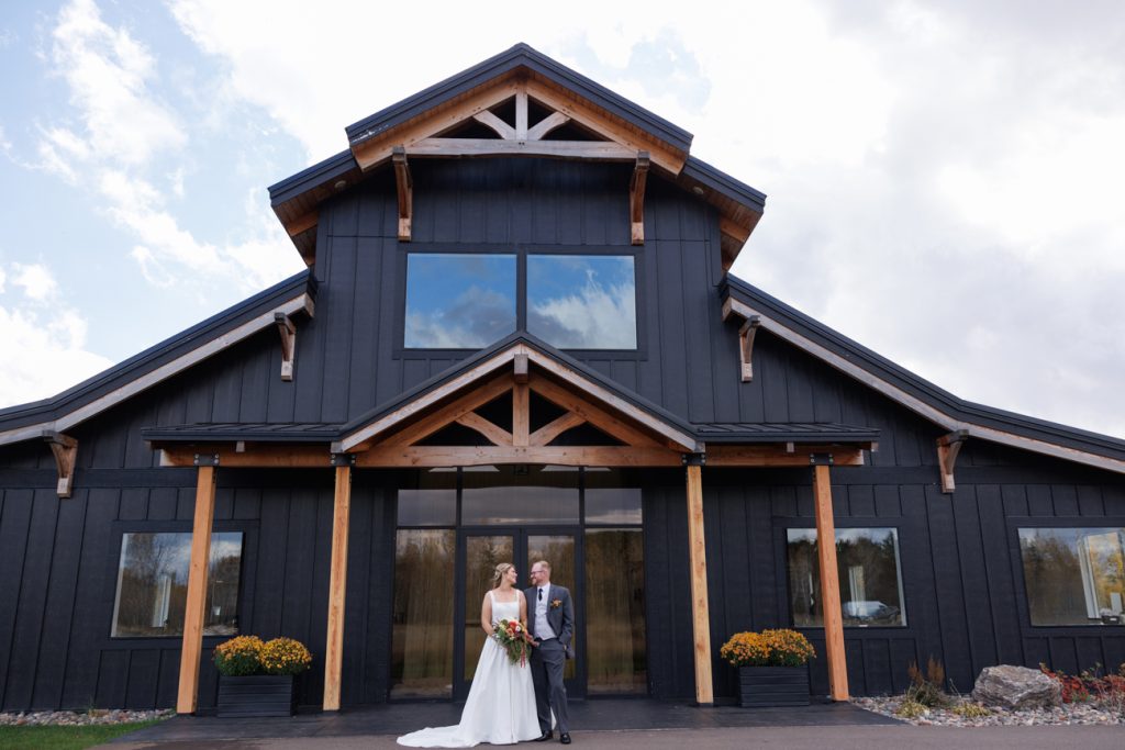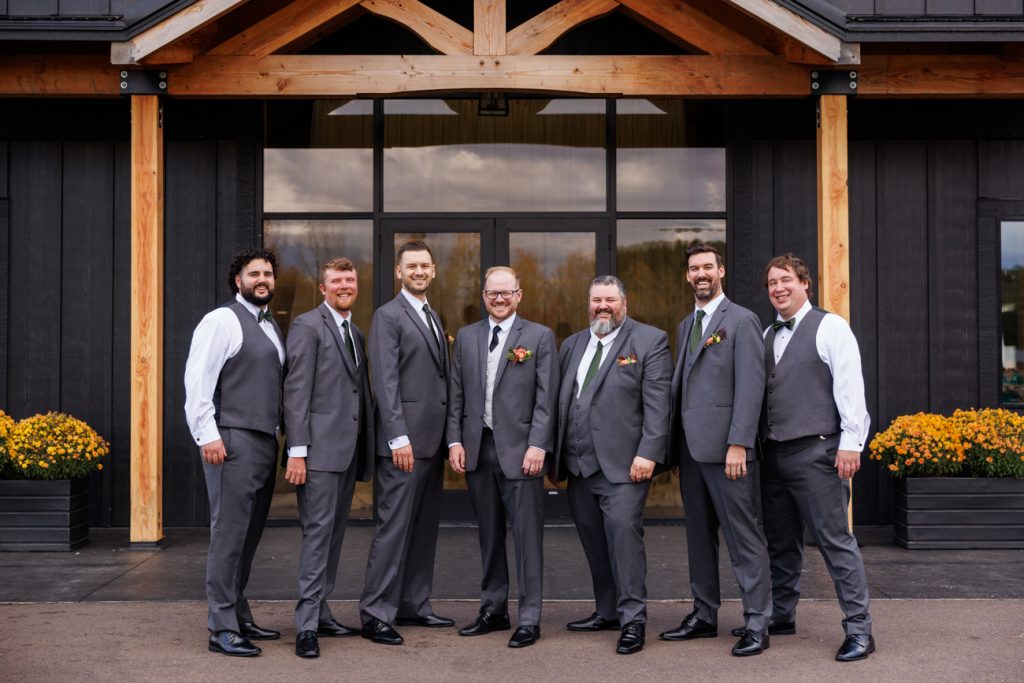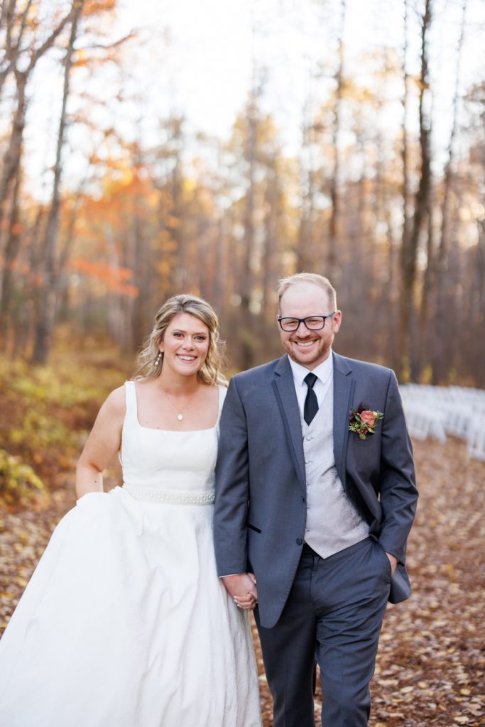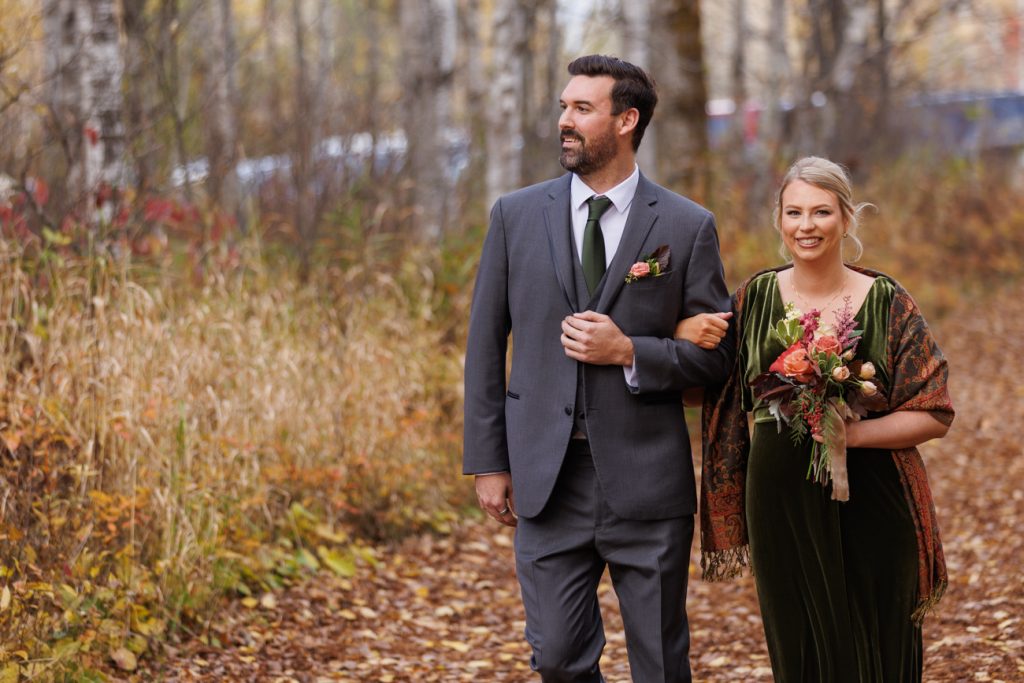 Congratulations Mary and Alex! What a perfect fall wedding day. We adore this couple! Ivy Black is one of our favorite wedding venues, located just outside of Duluth, Minnesota. The day started with laughter with the bridesmaids and groomsmen, they had separate getting ready rooms. The bridal room is on the second level and it is perfect for those first beautiful moments with the bride. After the “first look” we had fun around the fabulous property taking photos. The ceremony was among the falling leaves in the forest, it was stunning! Ivy Black was decked out with gorgeous decorations and fresh flowers. Black Woods Catering provided a delicious charcuterie board to feed hundreds of guests. Mary surprised Alex with a personal grand march announcement from the voice of the Viking, Alan Roach! The dance was so much fun with Sounds Unlimited DJ. Enjoy the videography by Bethany and the photography by Beau, AMAZING memories!