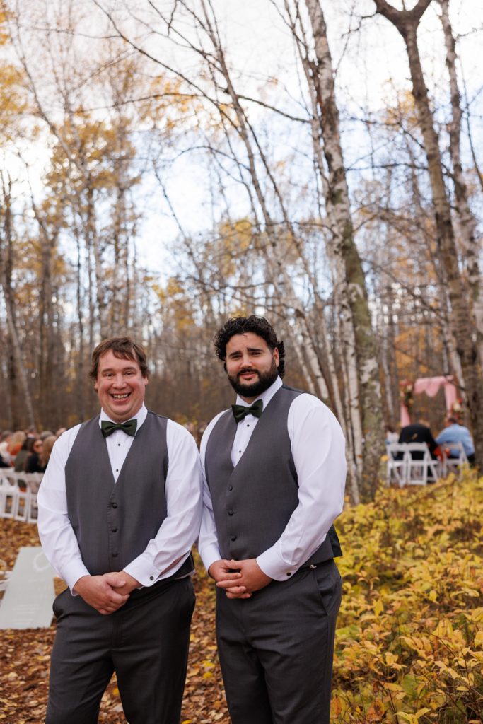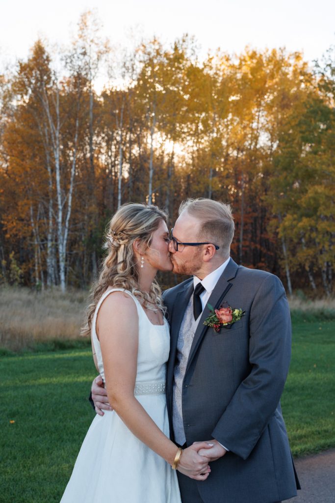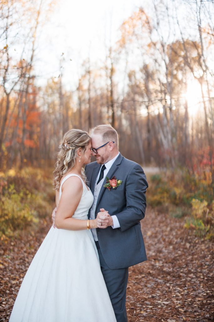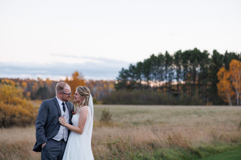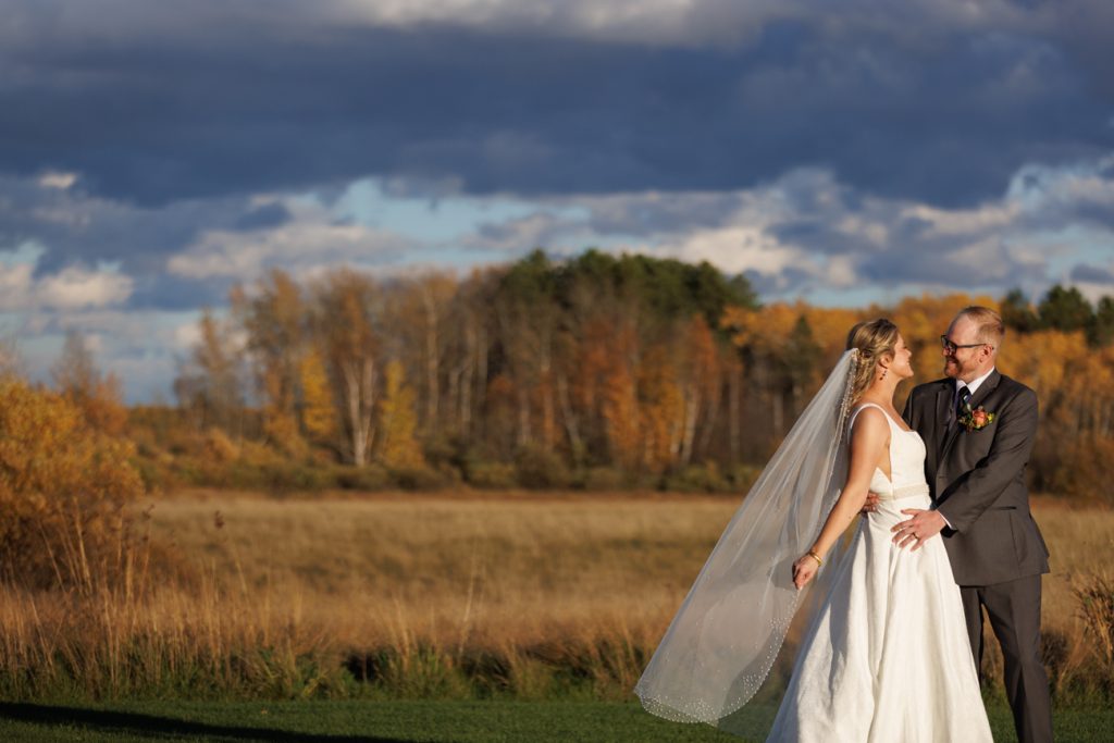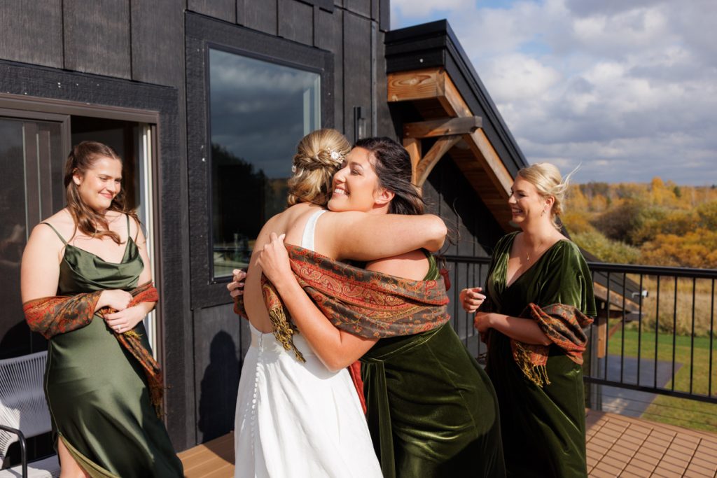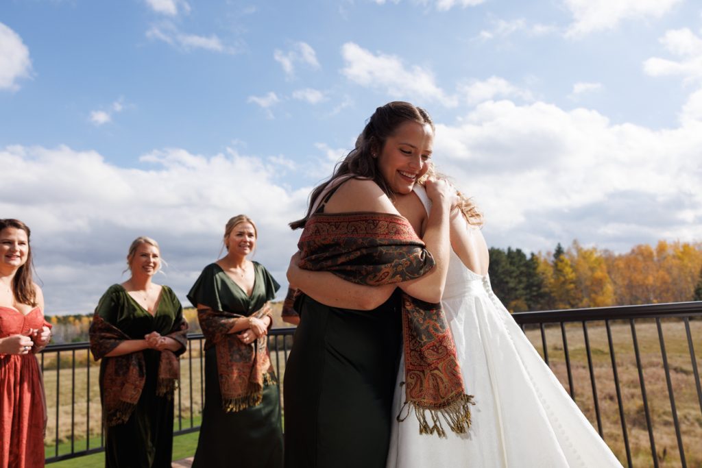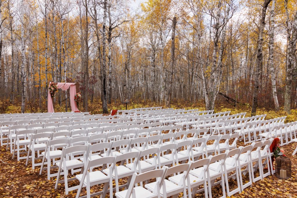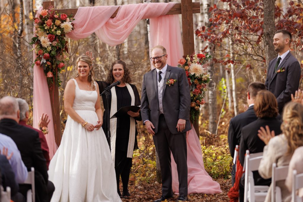 Congratulations Mary and Alex! What a perfect fall wedding day. We adore this couple! Ivy Black is one of our favorite wedding venues, located just outside of Duluth, Minnesota. The day started with laughter with the bridesmaids and groomsmen, they had separate getting ready rooms. The bridal room is on the second level and it is perfect for those first beautiful moments with the bride. After the “first look” we had fun around the fabulous property taking photos. The ceremony was among the falling leaves in the forest, it was stunning! Ivy Black was decked out with gorgeous decorations and fresh flowers. Black Woods Catering provided a delicious charcuterie board to feed hundreds of guests. Mary surprised Alex with a personal grand march announcement from the voice of the Viking, Alan Roach! The dance was so much fun with Sounds Unlimited DJ. Enjoy the videography by Bethany and the photography by Beau, AMAZING memories!