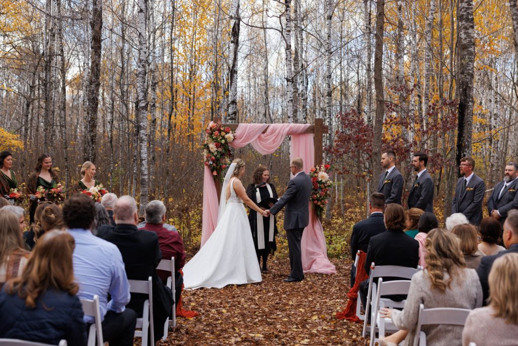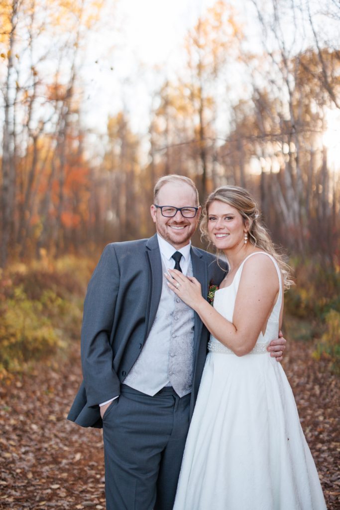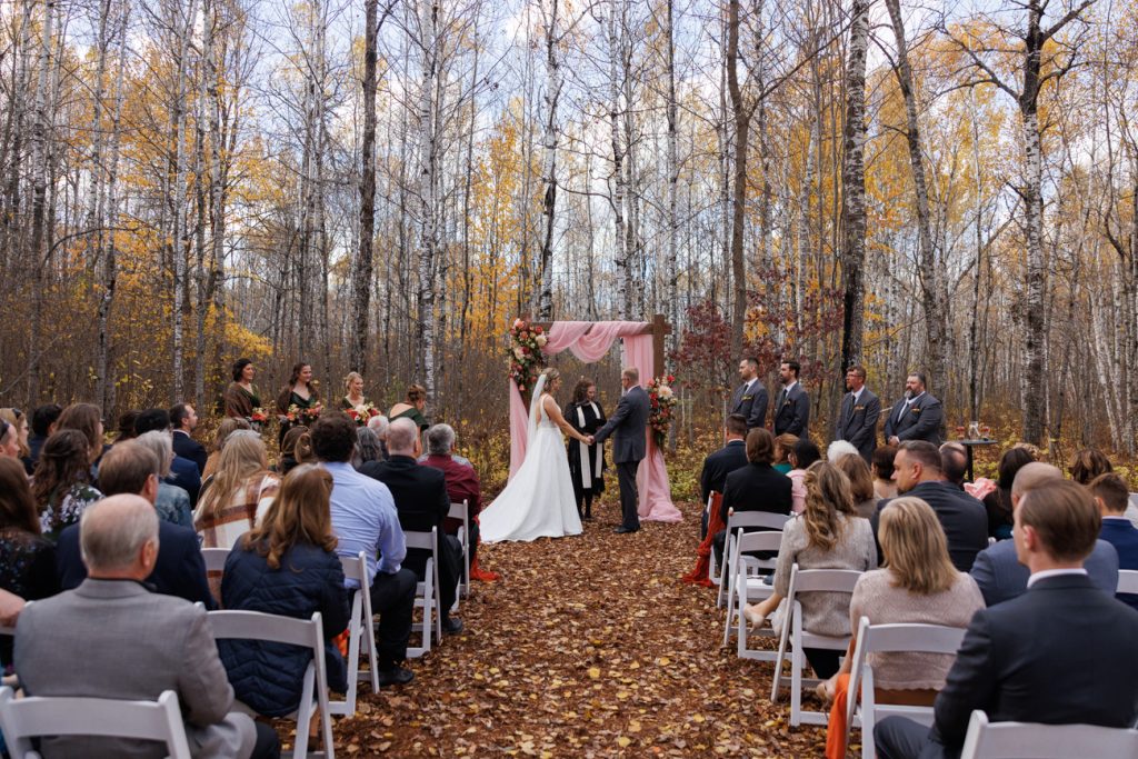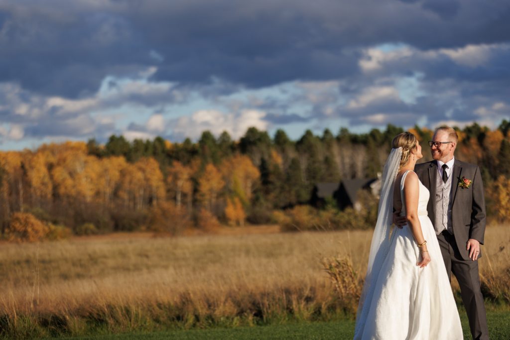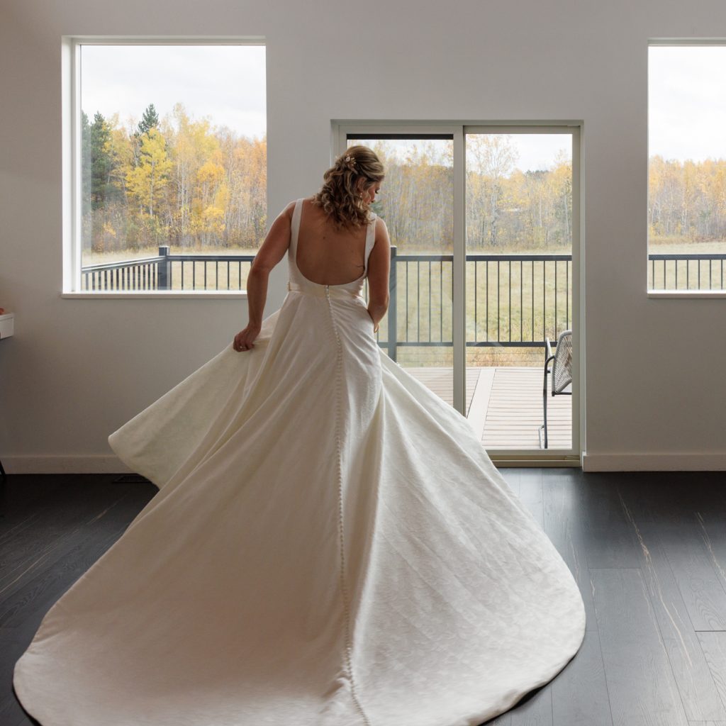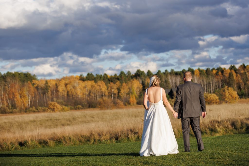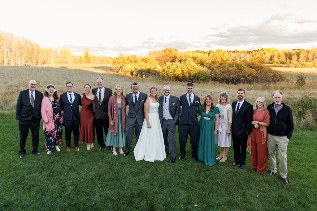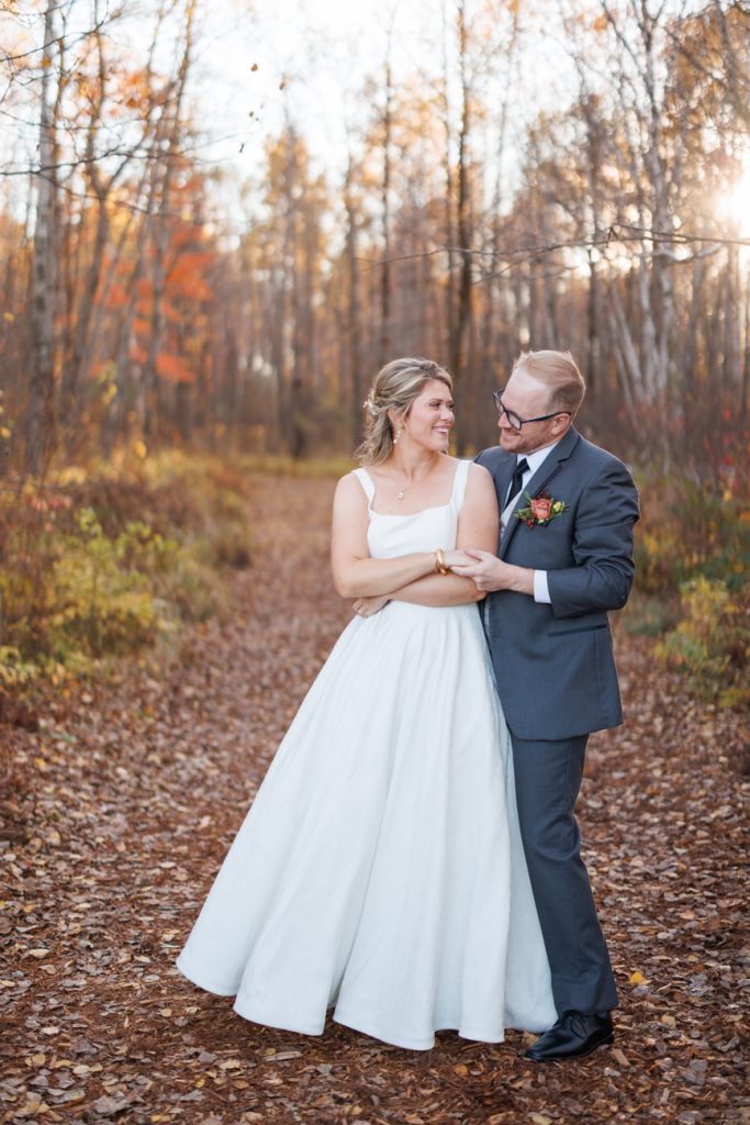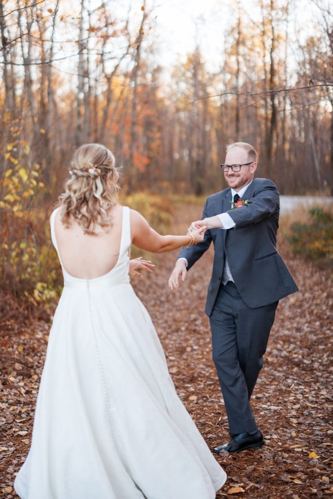 Congratulations Mary and Alex! What a perfect fall wedding day. We adore this couple! Ivy Black is one of our favorite wedding venues, located just outside of Duluth, Minnesota. The day started with laughter with the bridesmaids and groomsmen, they had separate getting ready rooms. The bridal room is on the second level and it is perfect for those first beautiful moments with the bride. After the “first look” we had fun around the fabulous property taking photos. The ceremony was among the falling leaves in the forest, it was stunning! Ivy Black was decked out with gorgeous decorations and fresh flowers. Black Woods Catering provided a delicious charcuterie board to feed hundreds of guests. Mary surprised Alex with a personal grand march announcement from the voice of the Viking, Alan Roach! The dance was so much fun with Sounds Unlimited DJ. Enjoy the videography by Bethany and the photography by Beau, AMAZING memories!