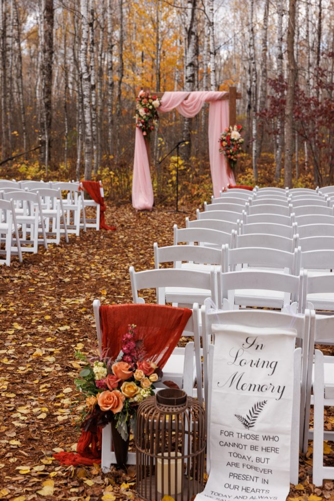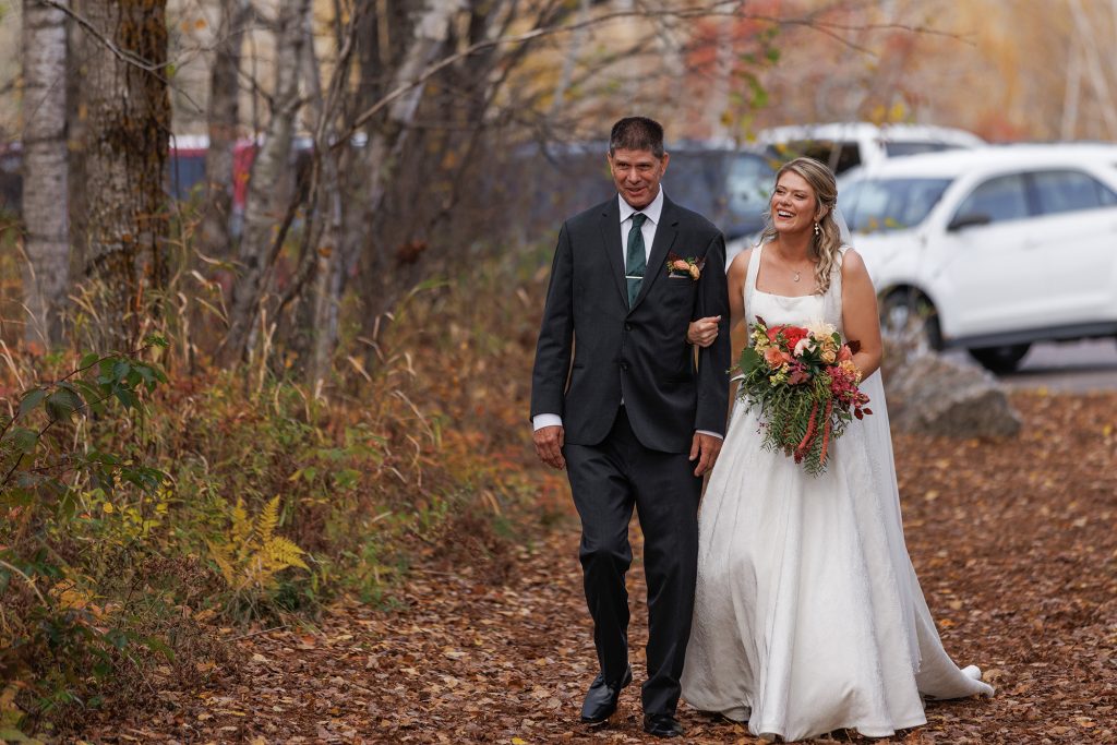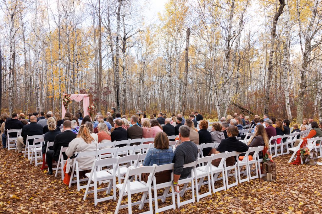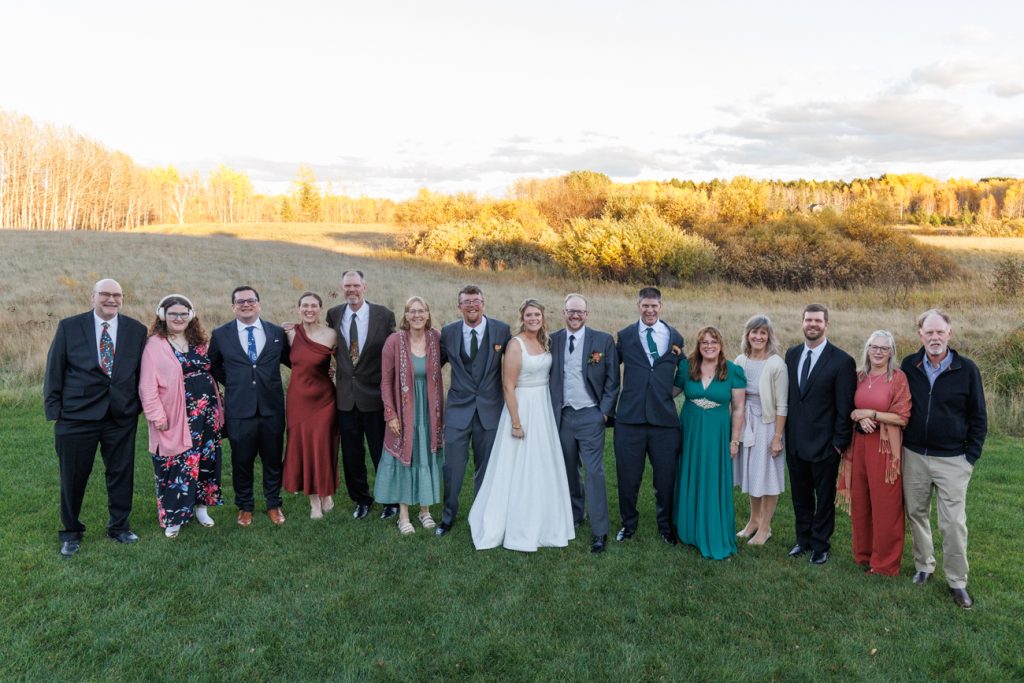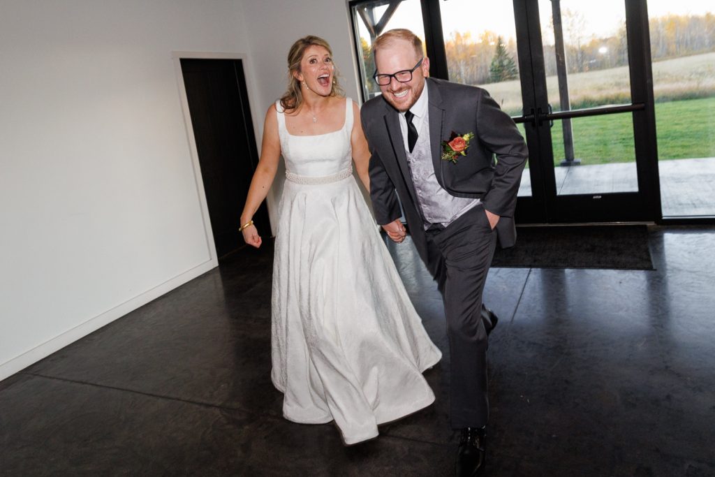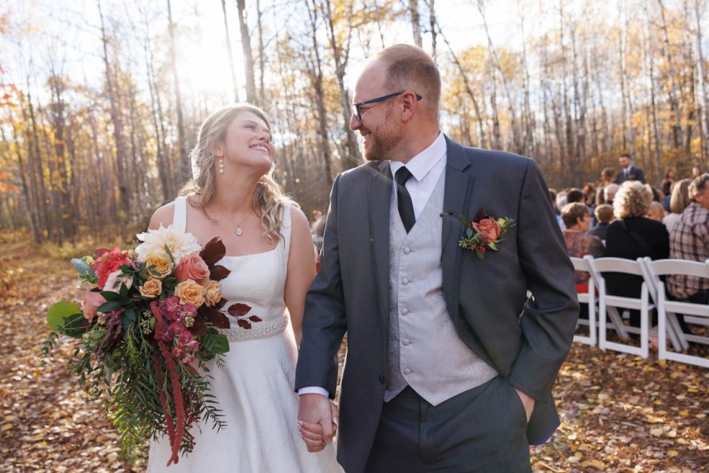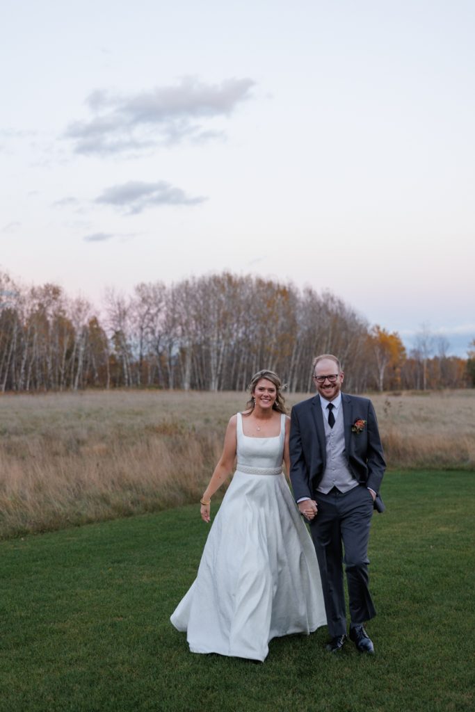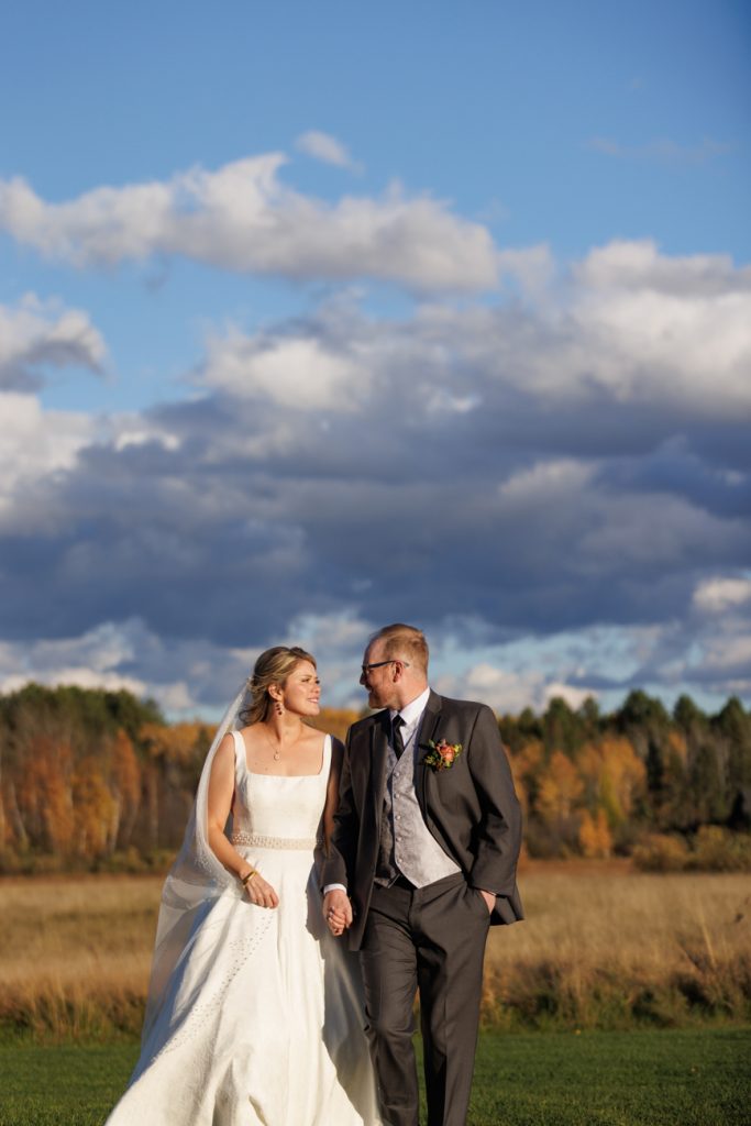 Congratulations Mary and Alex! What a perfect fall wedding day. We adore this couple! Ivy Black is one of our favorite wedding venues, located just outside of Duluth, Minnesota. The day started with laughter with the bridesmaids and groomsmen, they had separate getting ready rooms. The bridal room is on the second level and it is perfect for those first beautiful moments with the bride. After the “first look” we had fun around the fabulous property taking photos. The ceremony was among the falling leaves in the forest, it was stunning! Ivy Black was decked out with gorgeous decorations and fresh flowers. Black Woods Catering provided a delicious charcuterie board to feed hundreds of guests. Mary surprised Alex with a personal grand march announcement from the voice of the Viking, Alan Roach! The dance was so much fun with Sounds Unlimited DJ. Enjoy the videography by Bethany and the photography by Beau, AMAZING memories!