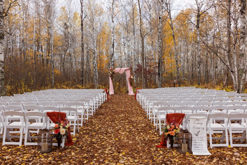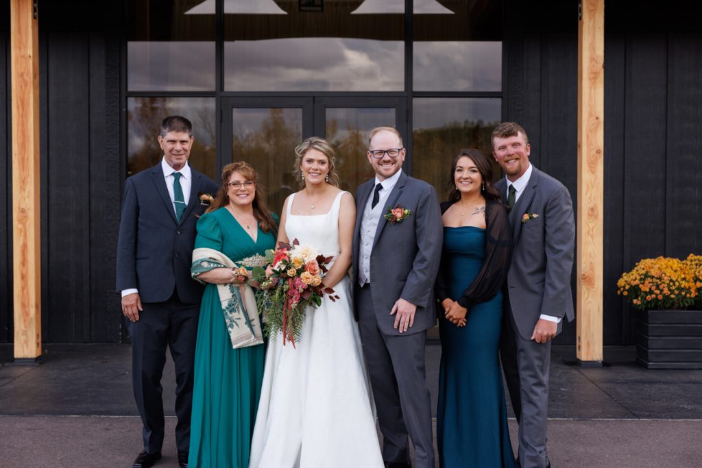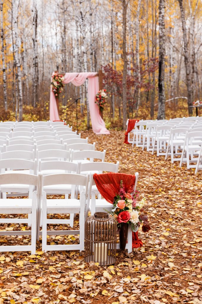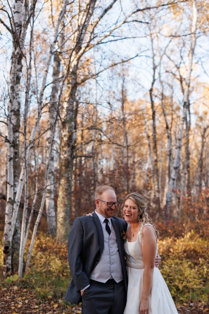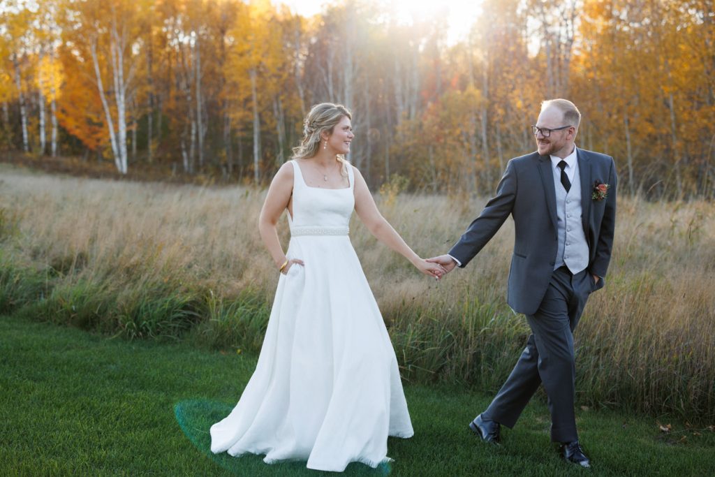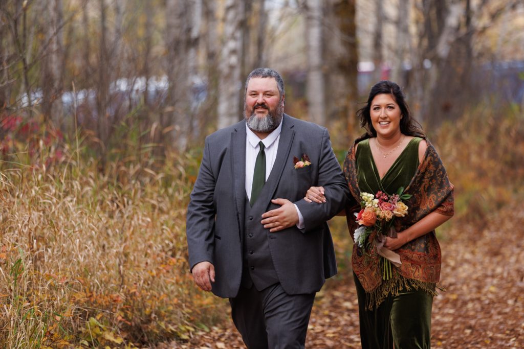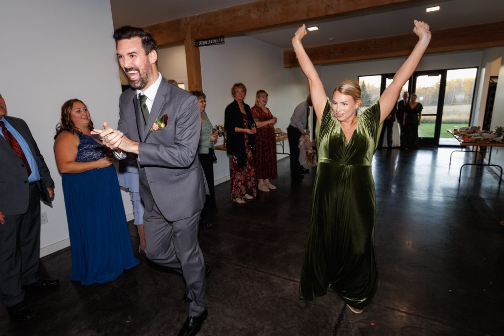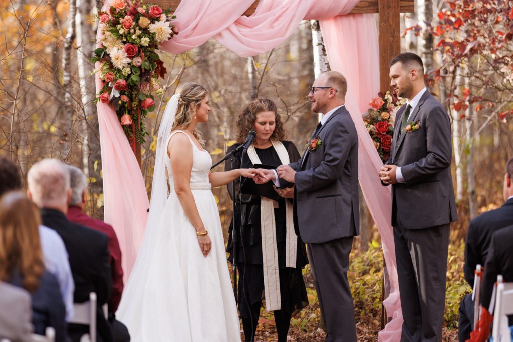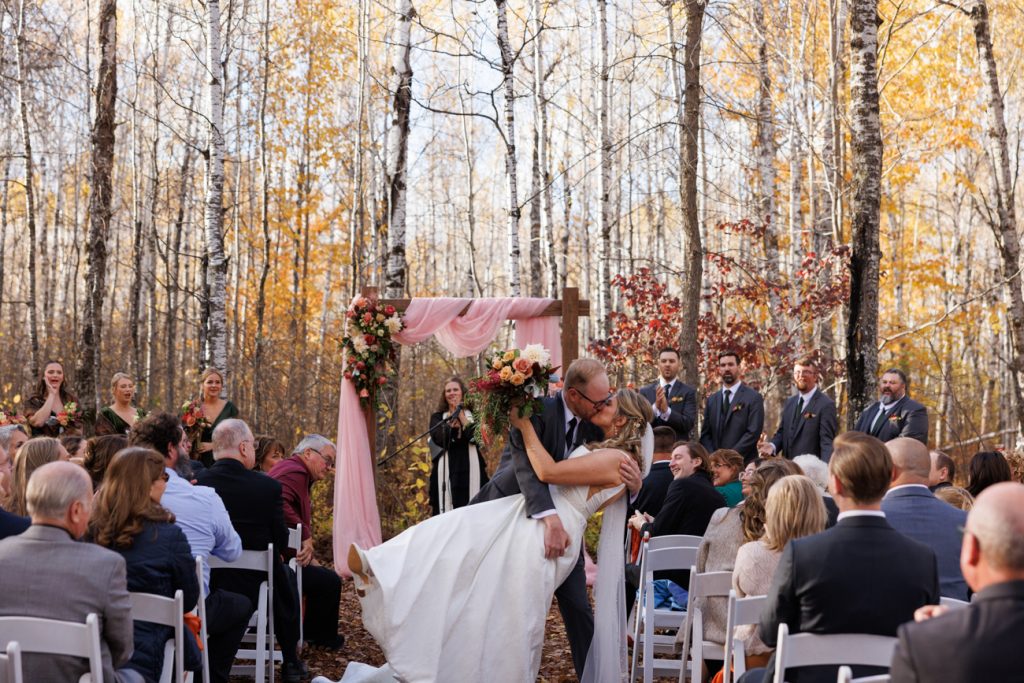 Congratulations Mary and Alex! What a perfect fall wedding day. We adore this couple! Ivy Black is one of our favorite wedding venues, located just outside of Duluth, Minnesota. The day started with laughter with the bridesmaids and groomsmen, they had separate getting ready rooms. The bridal room is on the second level and it is perfect for those first beautiful moments with the bride. After the “first look” we had fun around the fabulous property taking photos. The ceremony was among the falling leaves in the forest, it was stunning! Ivy Black was decked out with gorgeous decorations and fresh flowers. Black Woods Catering provided a delicious charcuterie board to feed hundreds of guests. Mary surprised Alex with a personal grand march announcement from the voice of the Viking, Alan Roach! The dance was so much fun with Sounds Unlimited DJ. Enjoy the videography by Bethany and the photography by Beau, AMAZING memories!