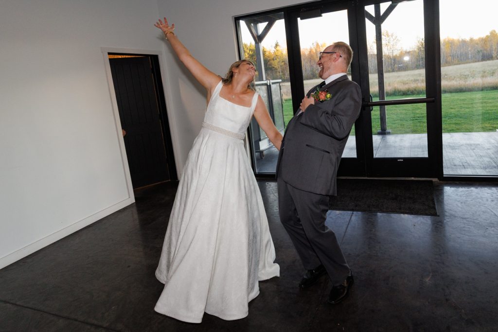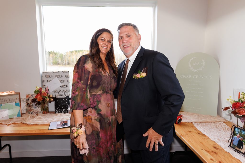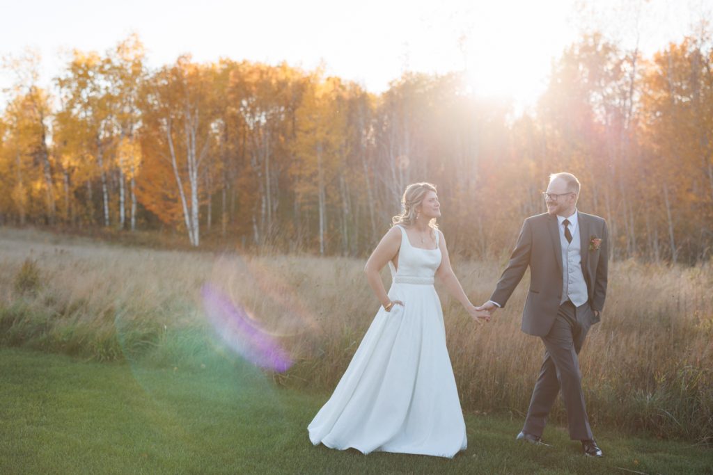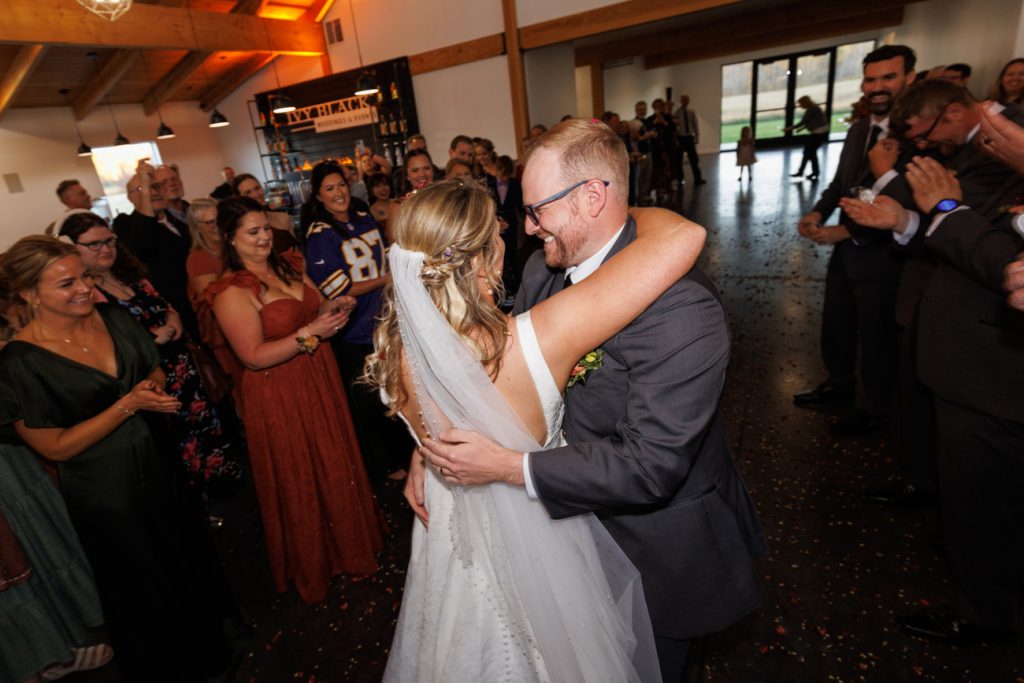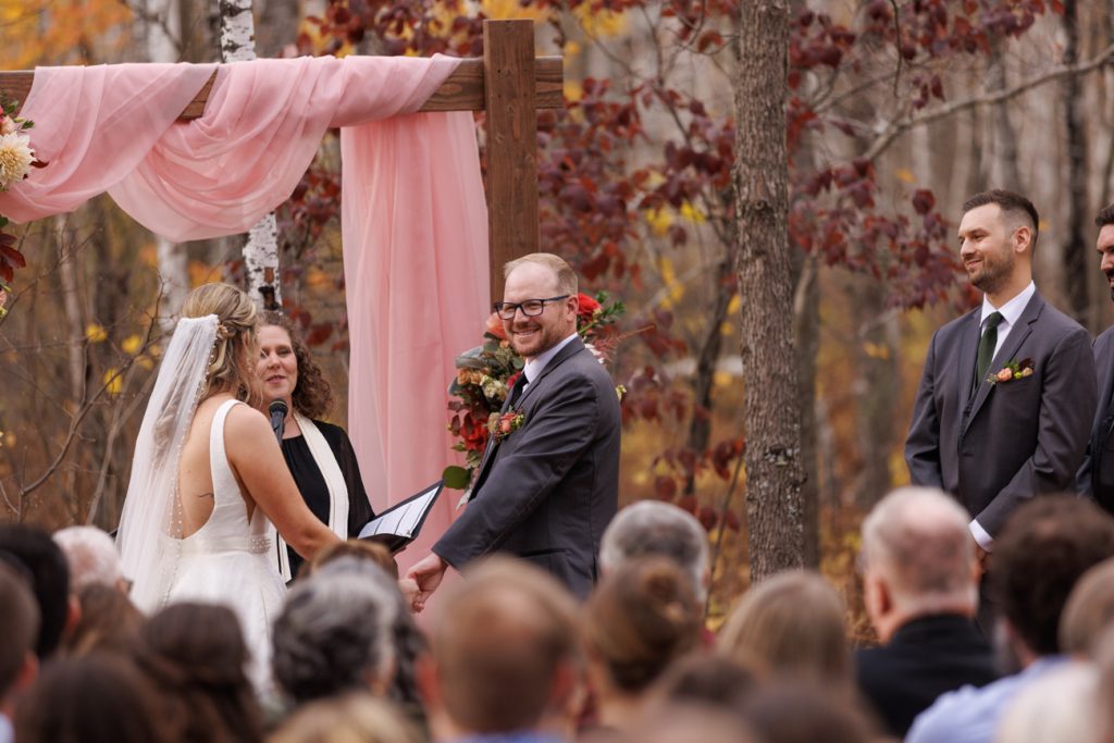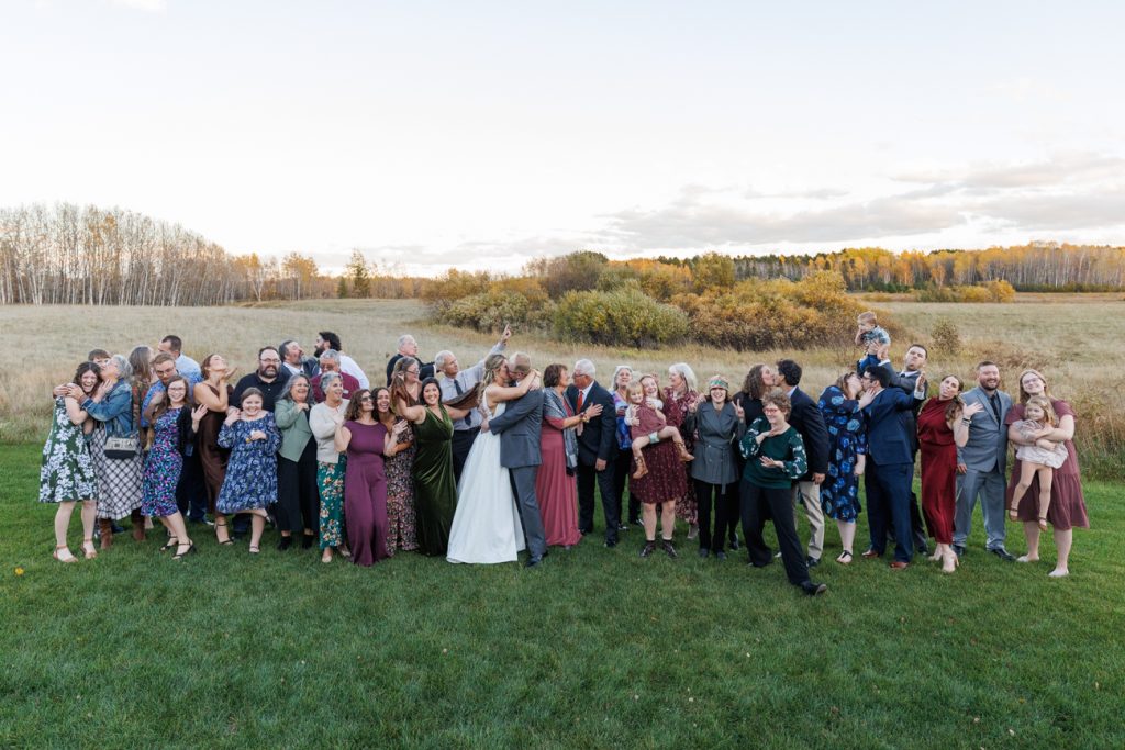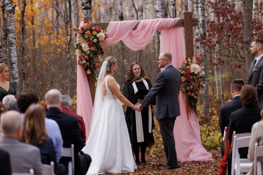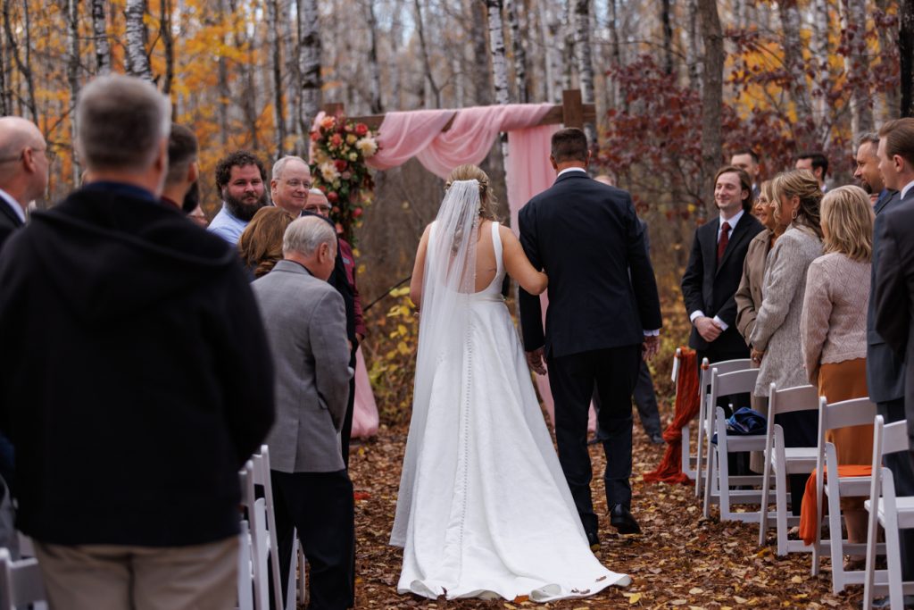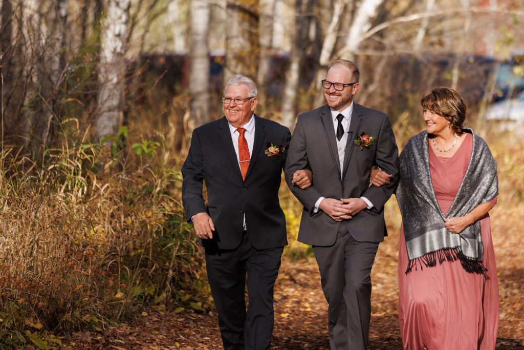 Congratulations Mary and Alex! What a perfect fall wedding day. We adore this couple! Ivy Black is one of our favorite wedding venues, located just outside of Duluth, Minnesota. The day started with laughter with the bridesmaids and groomsmen, they had separate getting ready rooms. The bridal room is on the second level and it is perfect for those first beautiful moments with the bride. After the “first look” we had fun around the fabulous property taking photos. The ceremony was among the falling leaves in the forest, it was stunning! Ivy Black was decked out with gorgeous decorations and fresh flowers. Black Woods Catering provided a delicious charcuterie board to feed hundreds of guests. Mary surprised Alex with a personal grand march announcement from the voice of the Viking, Alan Roach! The dance was so much fun with Sounds Unlimited DJ. Enjoy the videography by Bethany and the photography by Beau, AMAZING memories!