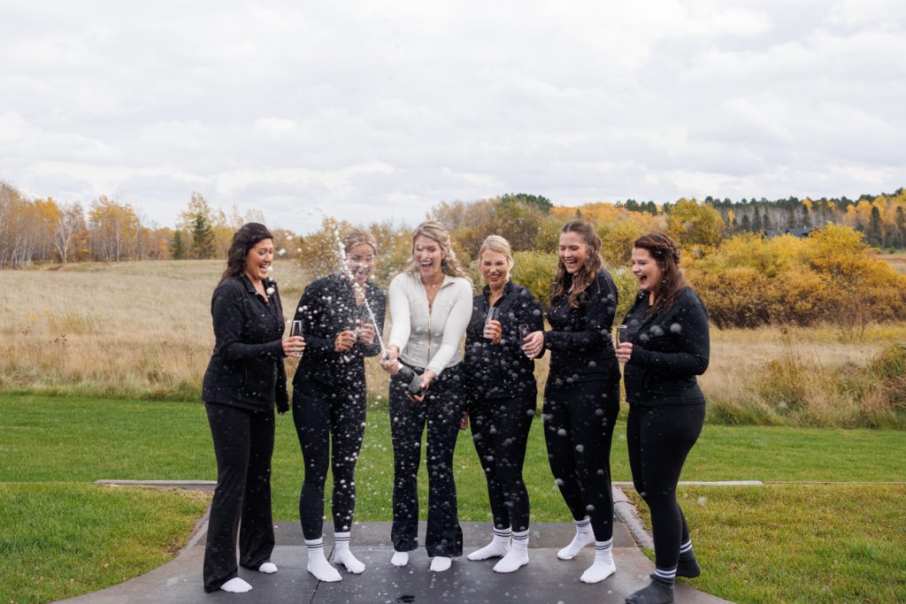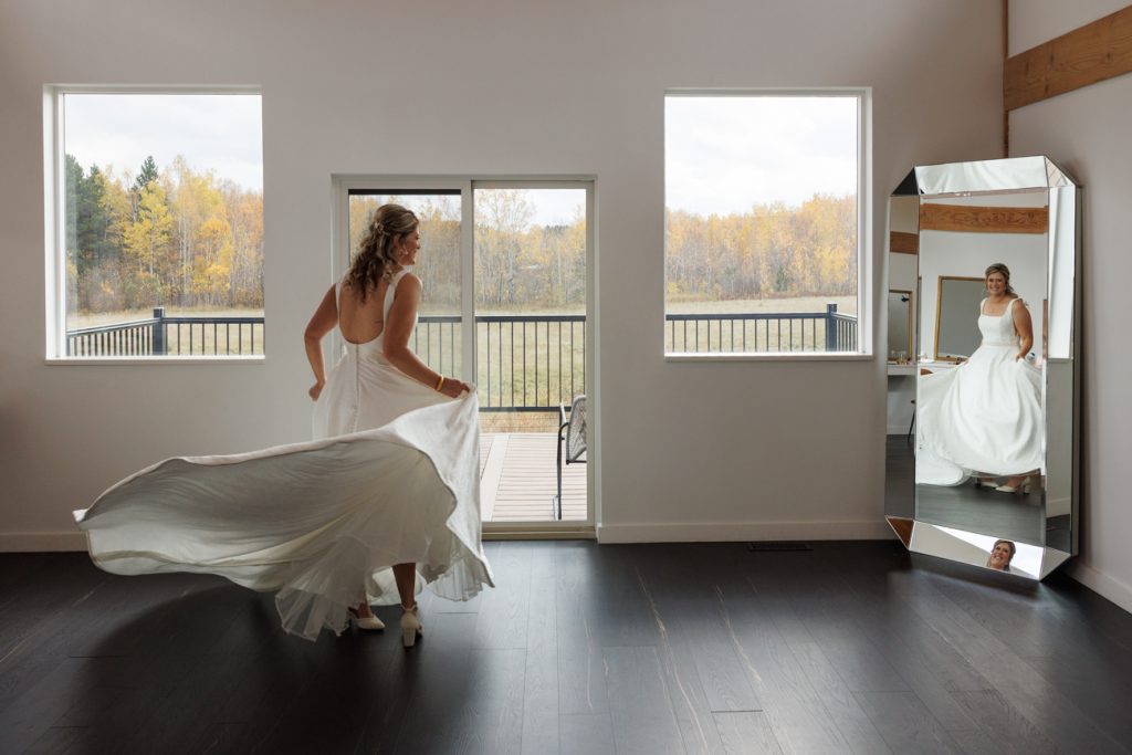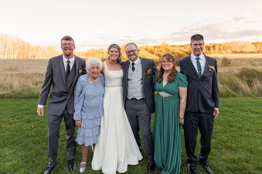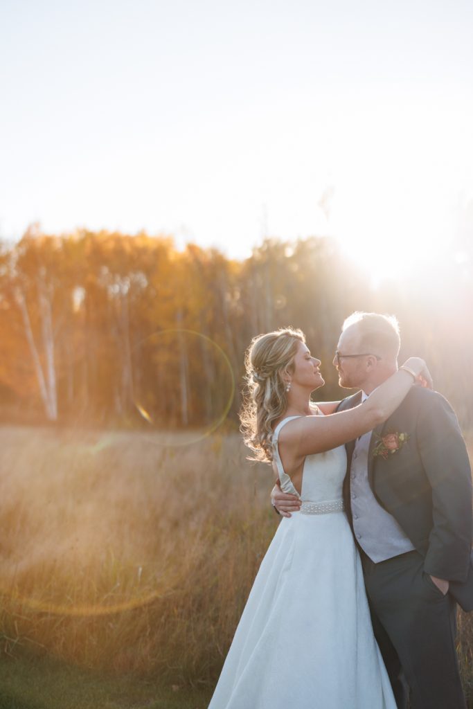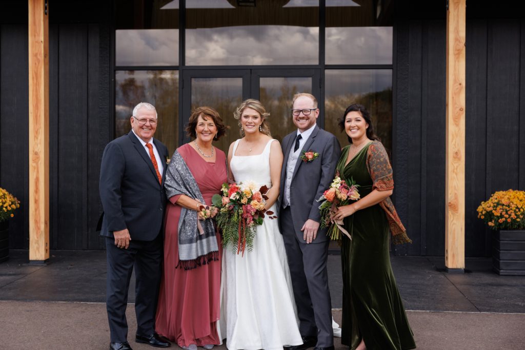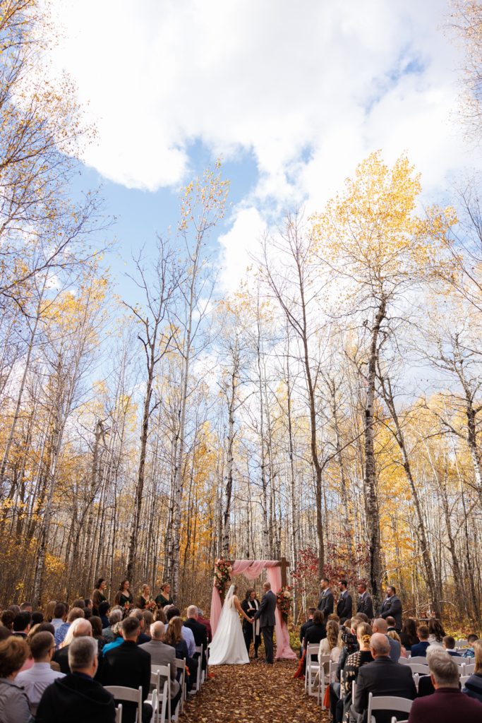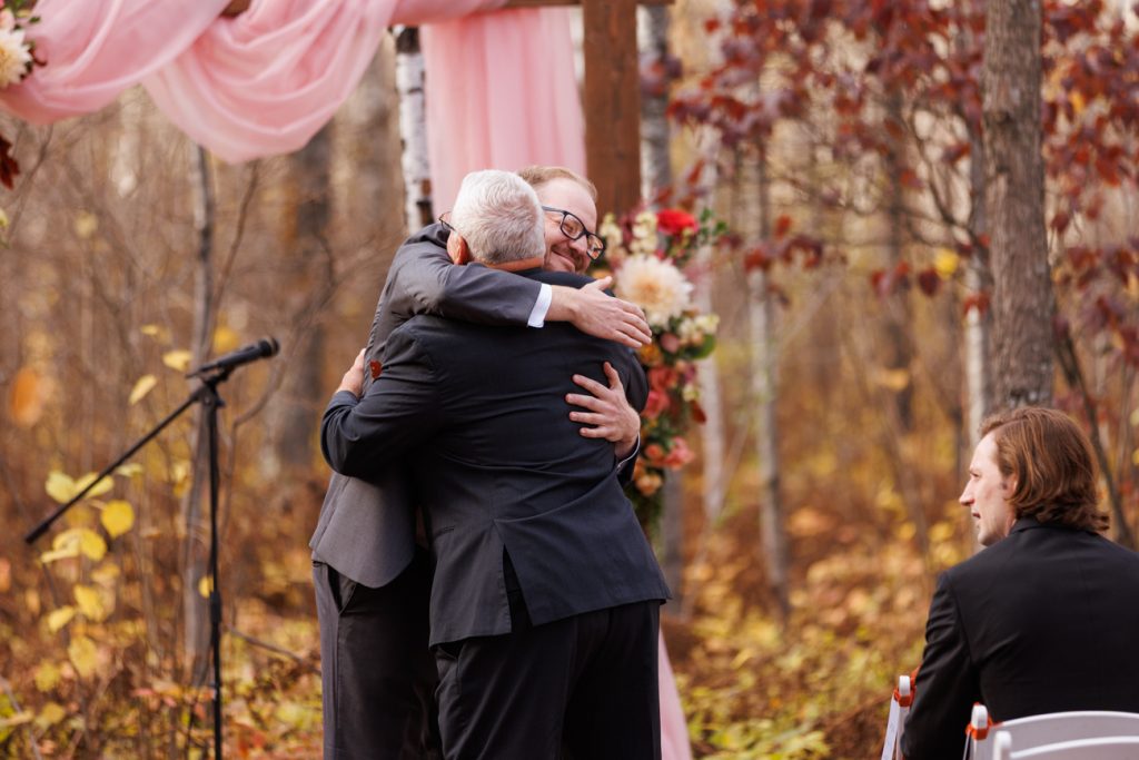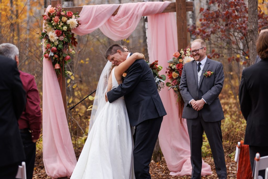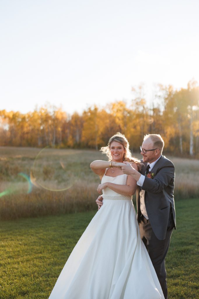 Congratulations Mary and Alex! What a perfect fall wedding day. We adore this couple! Ivy Black is one of our favorite wedding venues, located just outside of Duluth, Minnesota. The day started with laughter with the bridesmaids and groomsmen, they had separate getting ready rooms. The bridal room is on the second level and it is perfect for those first beautiful moments with the bride. After the “first look” we had fun around the fabulous property taking photos. The ceremony was among the falling leaves in the forest, it was stunning! Ivy Black was decked out with gorgeous decorations and fresh flowers. Black Woods Catering provided a delicious charcuterie board to feed hundreds of guests. Mary surprised Alex with a personal grand march announcement from the voice of the Viking, Alan Roach! The dance was so much fun with Sounds Unlimited DJ. Enjoy the videography by Bethany and the photography by Beau, AMAZING memories!