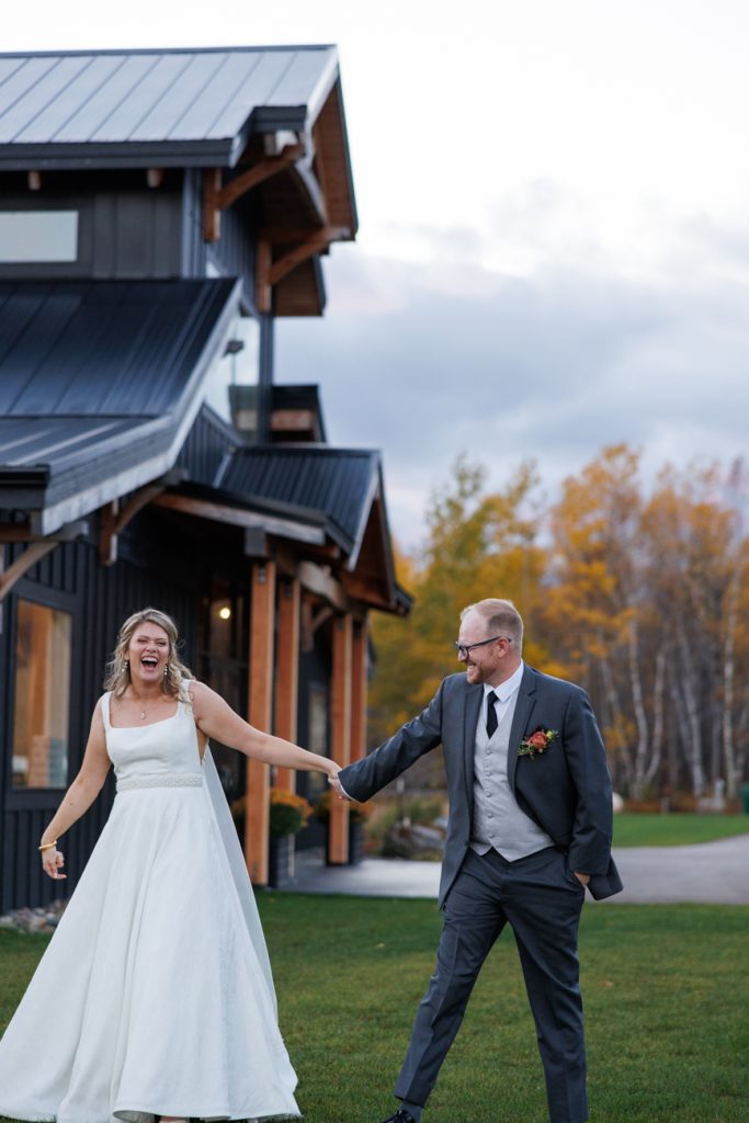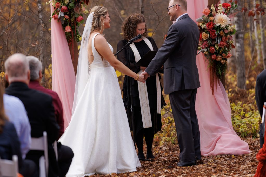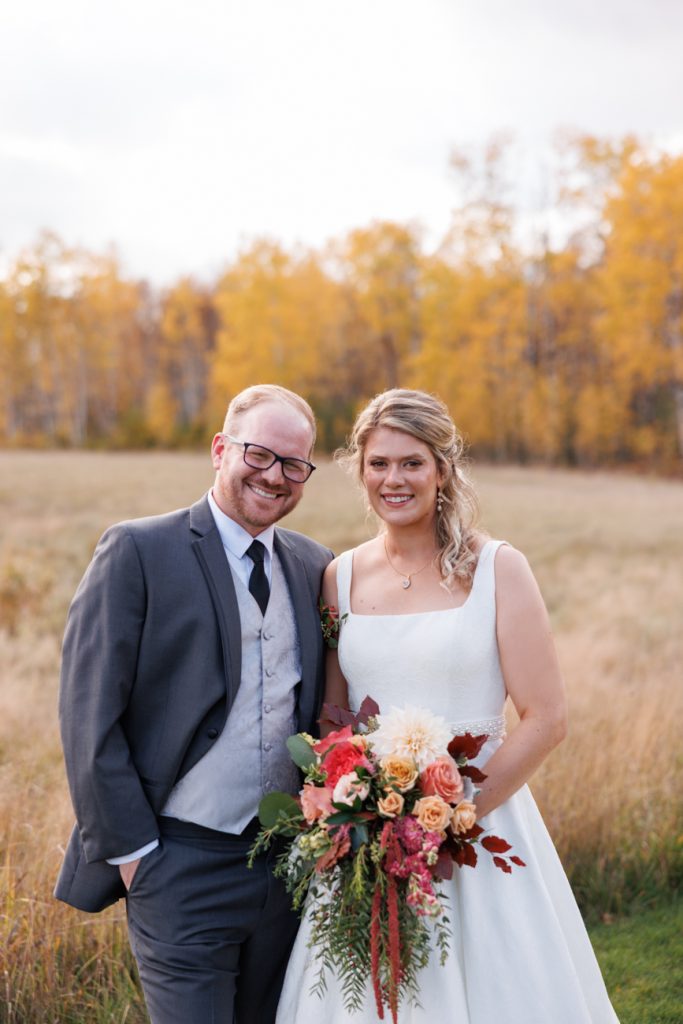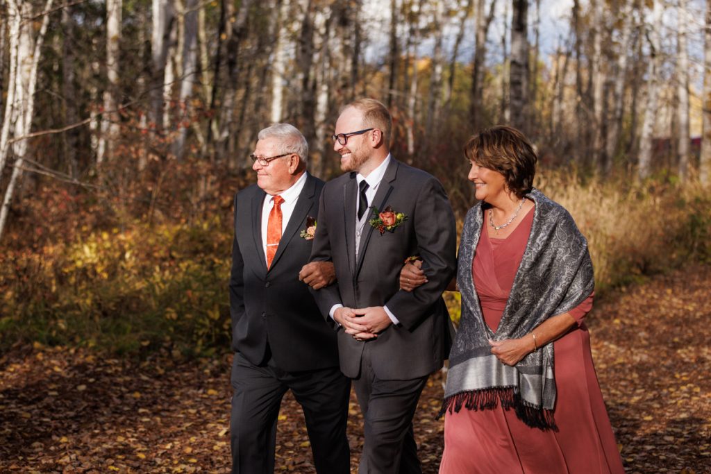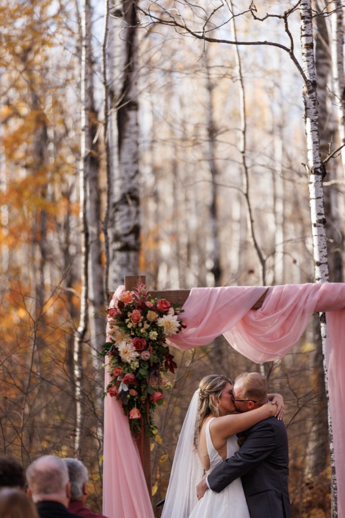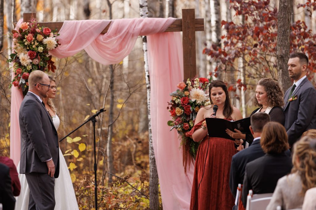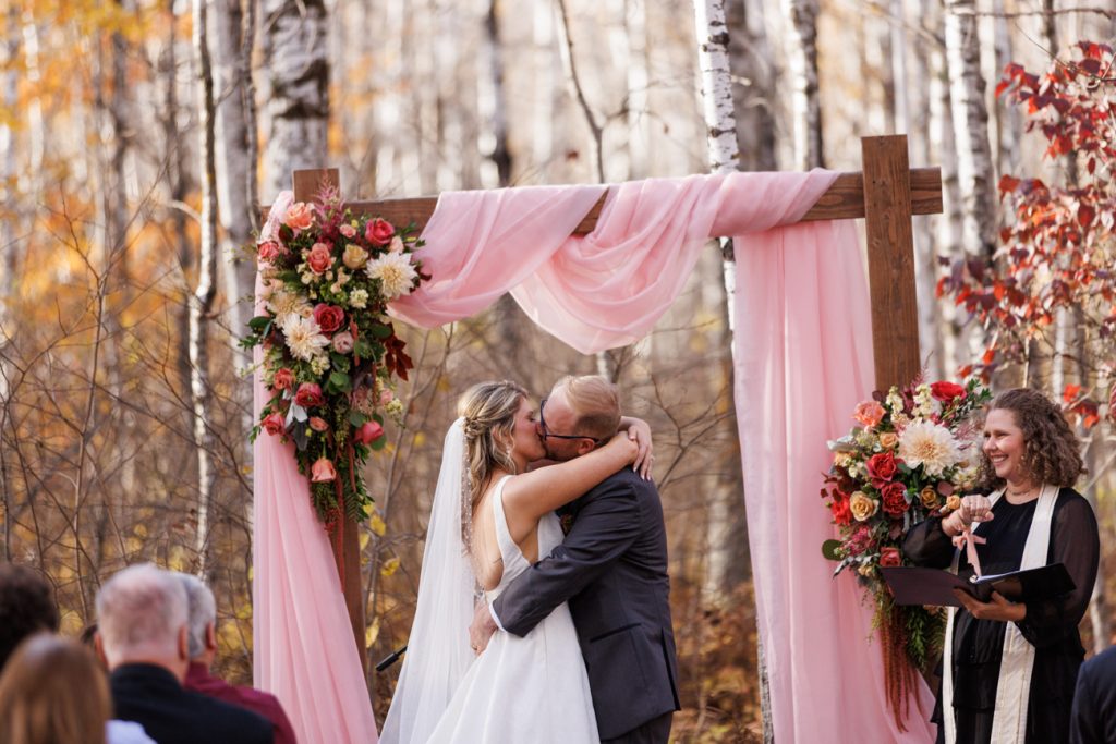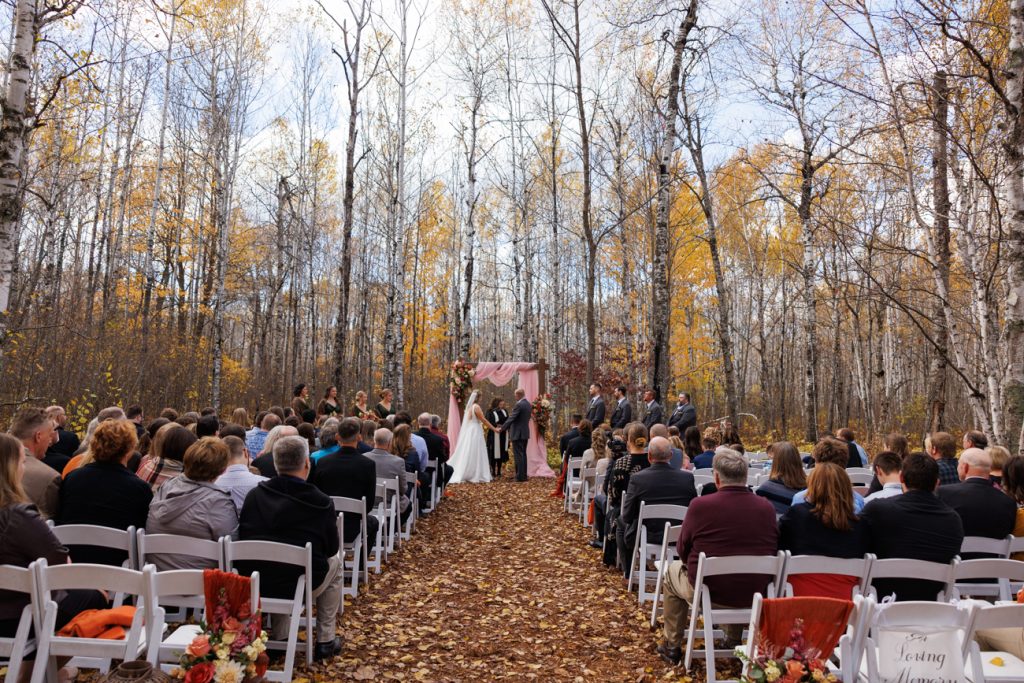 Congratulations Mary and Alex! What a perfect fall wedding day. We adore this couple! Ivy Black is one of our favorite wedding venues, located just outside of Duluth, Minnesota. The day started with laughter with the bridesmaids and groomsmen, they had separate getting ready rooms. The bridal room is on the second level and it is perfect for those first beautiful moments with the bride. After the “first look” we had fun around the fabulous property taking photos. The ceremony was among the falling leaves in the forest, it was stunning! Ivy Black was decked out with gorgeous decorations and fresh flowers. Black Woods Catering provided a delicious charcuterie board to feed hundreds of guests. Mary surprised Alex with a personal grand march announcement from the voice of the Viking, Alan Roach! The dance was so much fun with Sounds Unlimited DJ. Enjoy the videography by Bethany and the photography by Beau, AMAZING memories!