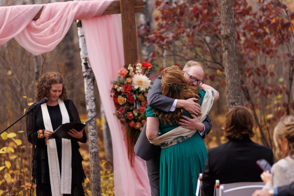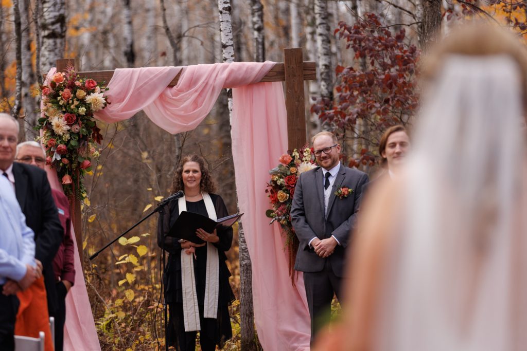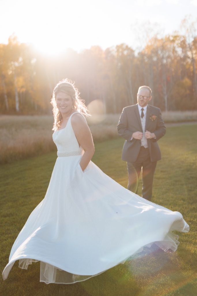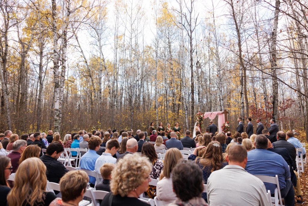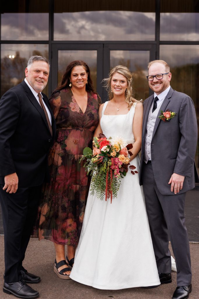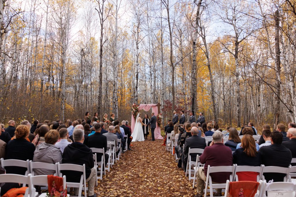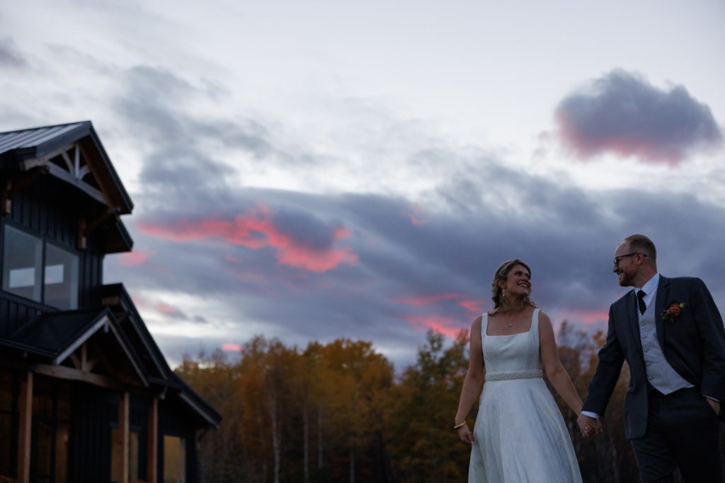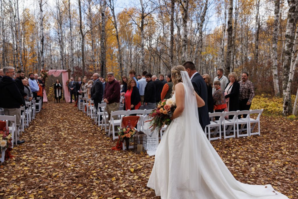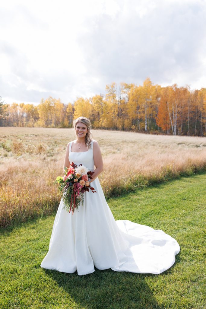 Congratulations Mary and Alex! What a perfect fall wedding day. We adore this couple! Ivy Black is one of our favorite wedding venues, located just outside of Duluth, Minnesota. The day started with laughter with the bridesmaids and groomsmen, they had separate getting ready rooms. The bridal room is on the second level and it is perfect for those first beautiful moments with the bride. After the “first look” we had fun around the fabulous property taking photos. The ceremony was among the falling leaves in the forest, it was stunning! Ivy Black was decked out with gorgeous decorations and fresh flowers. Black Woods Catering provided a delicious charcuterie board to feed hundreds of guests. Mary surprised Alex with a personal grand march announcement from the voice of the Viking, Alan Roach! The dance was so much fun with Sounds Unlimited DJ. Enjoy the videography by Bethany and the photography by Beau, AMAZING memories!