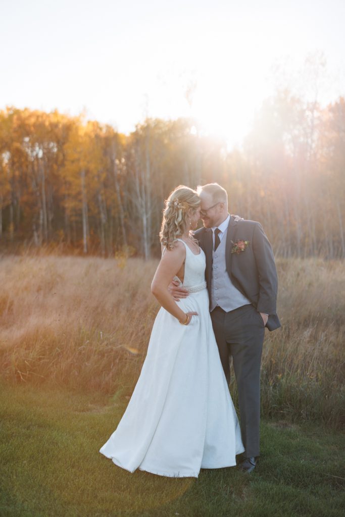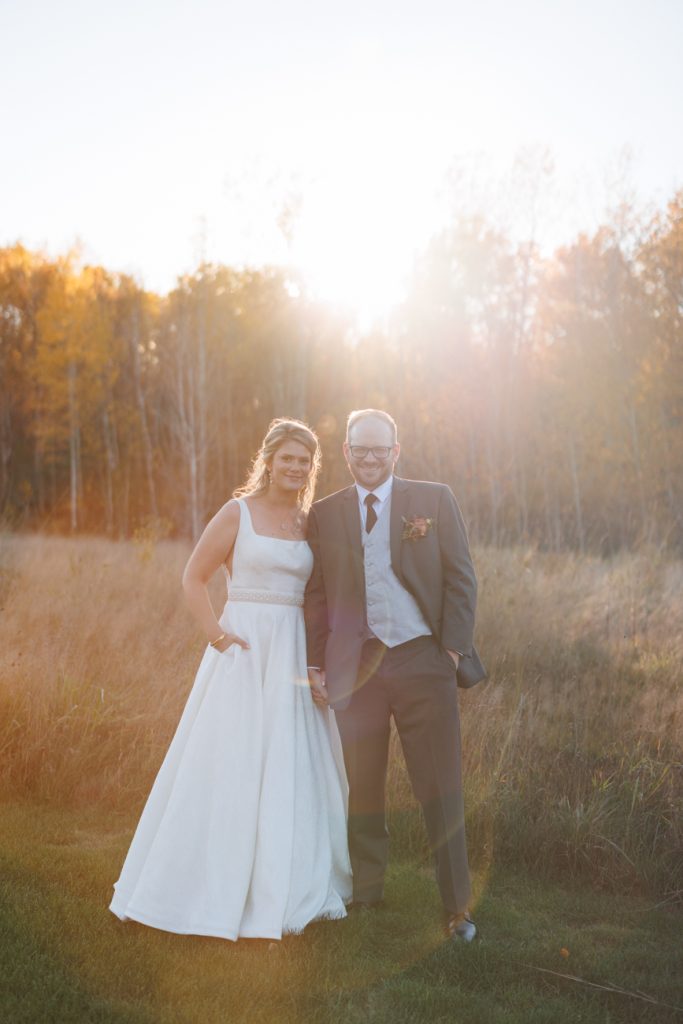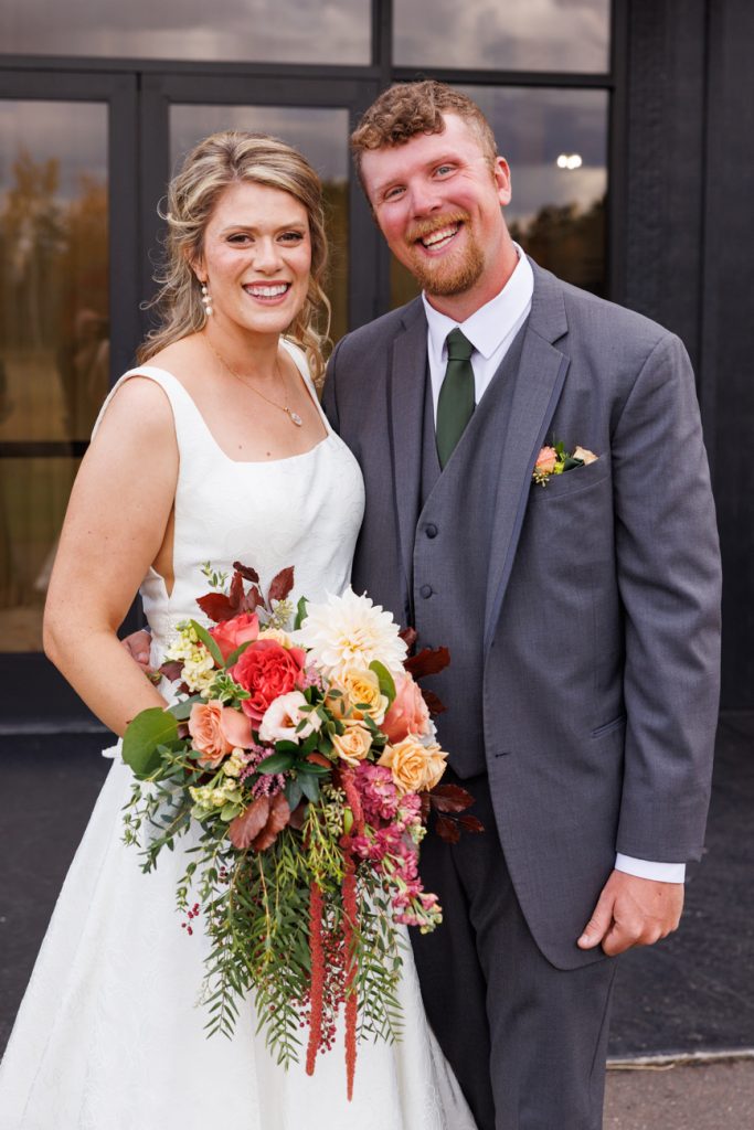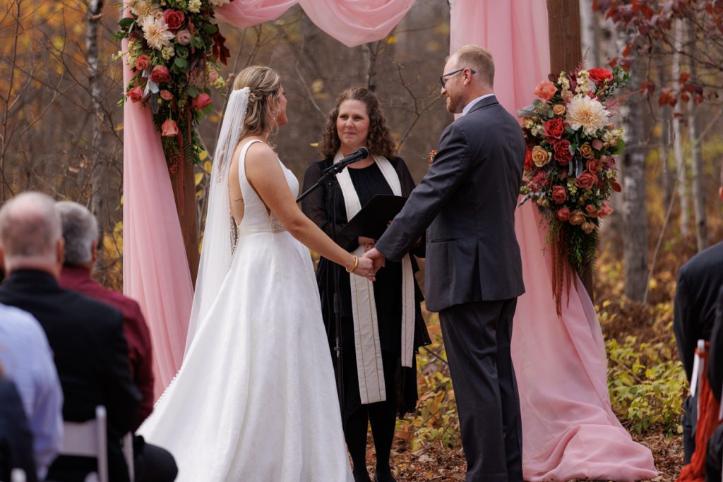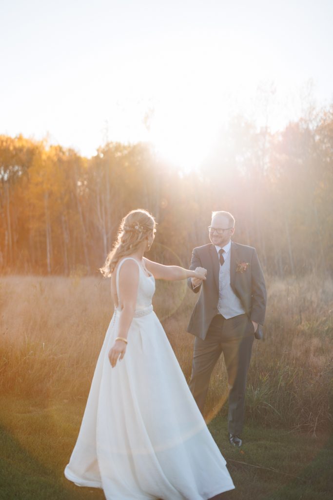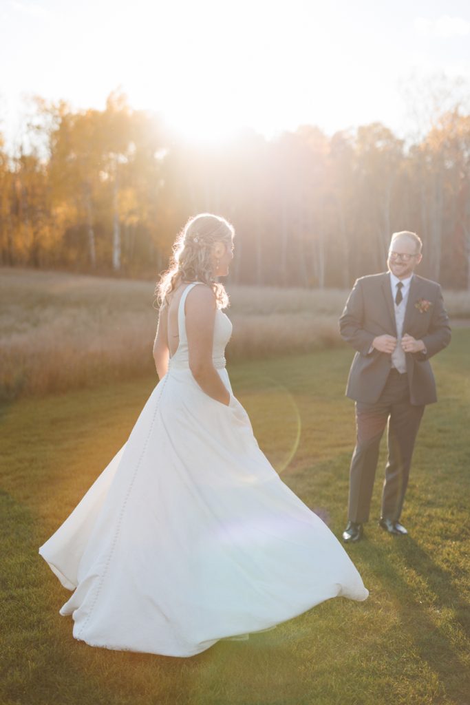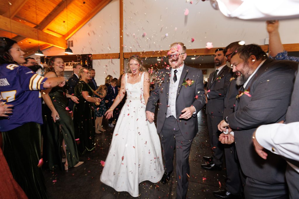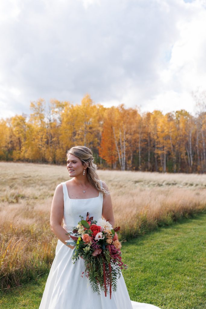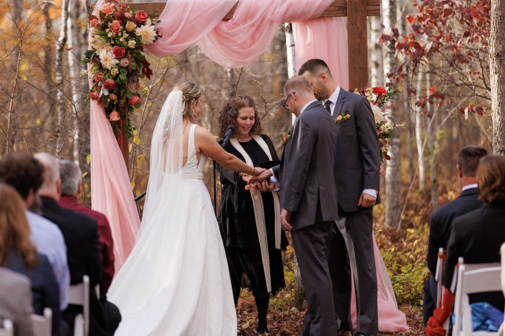 Congratulations Mary and Alex! What a perfect fall wedding day. We adore this couple! Ivy Black is one of our favorite wedding venues, located just outside of Duluth, Minnesota. The day started with laughter with the bridesmaids and groomsmen, they had separate getting ready rooms. The bridal room is on the second level and it is perfect for those first beautiful moments with the bride. After the “first look” we had fun around the fabulous property taking photos. The ceremony was among the falling leaves in the forest, it was stunning! Ivy Black was decked out with gorgeous decorations and fresh flowers. Black Woods Catering provided a delicious charcuterie board to feed hundreds of guests. Mary surprised Alex with a personal grand march announcement from the voice of the Viking, Alan Roach! The dance was so much fun with Sounds Unlimited DJ. Enjoy the videography by Bethany and the photography by Beau, AMAZING memories!