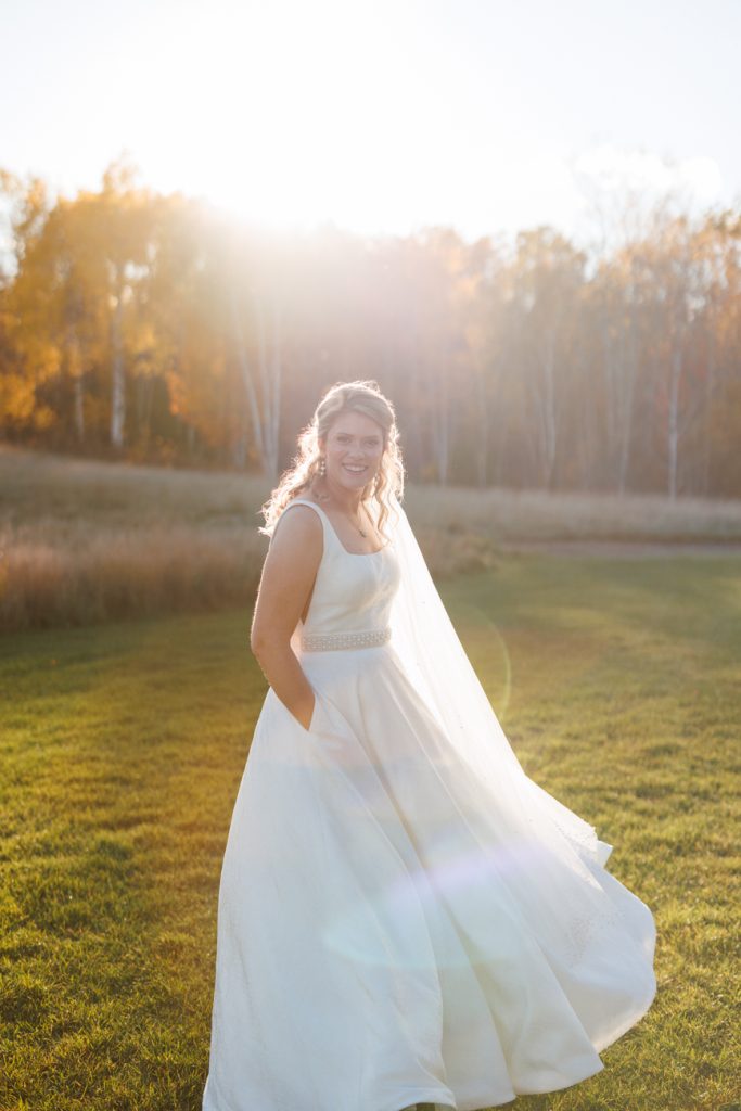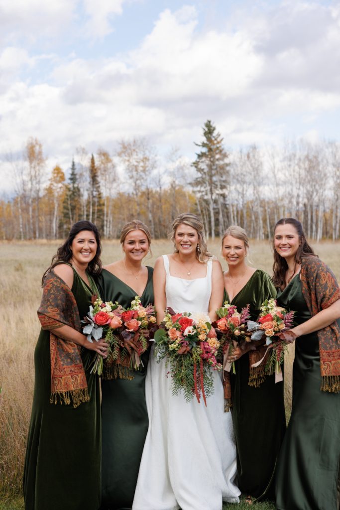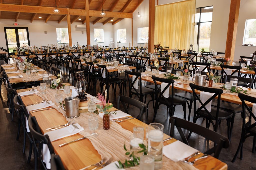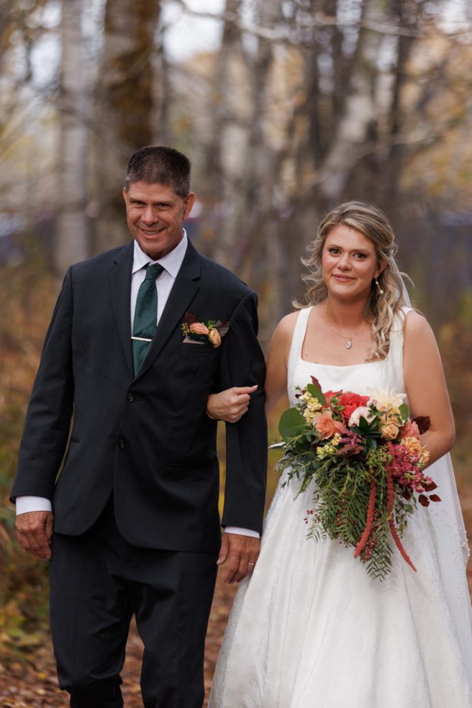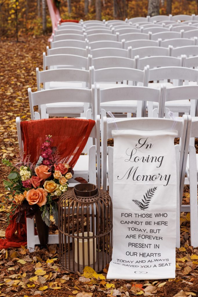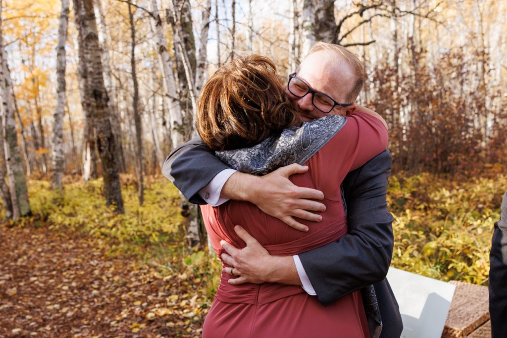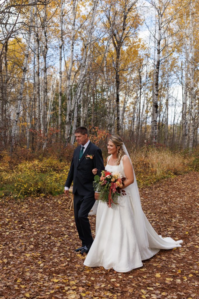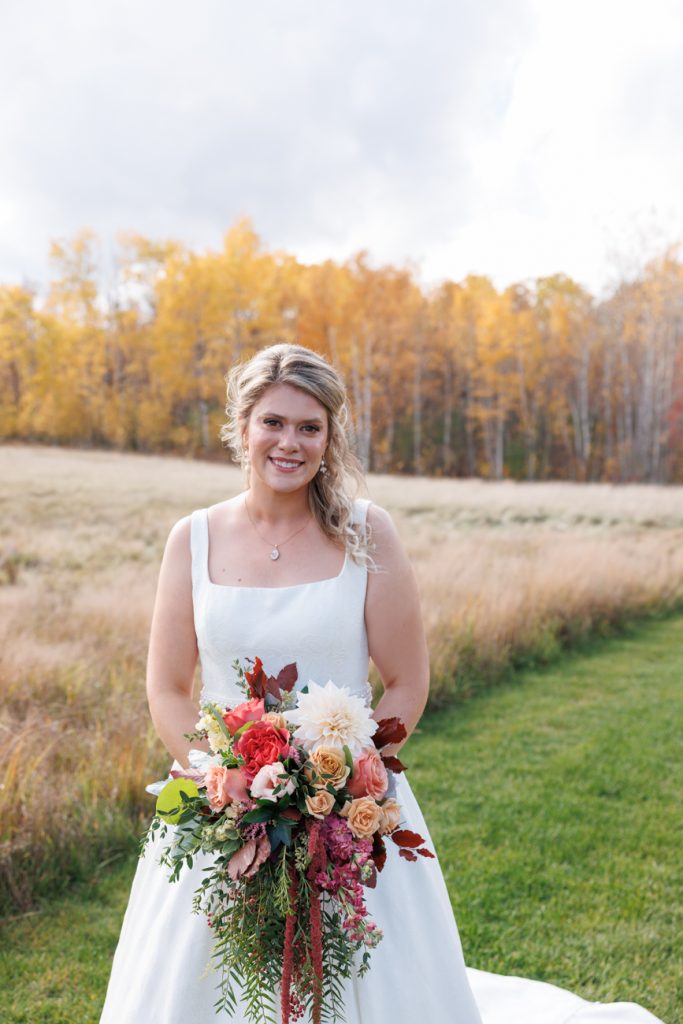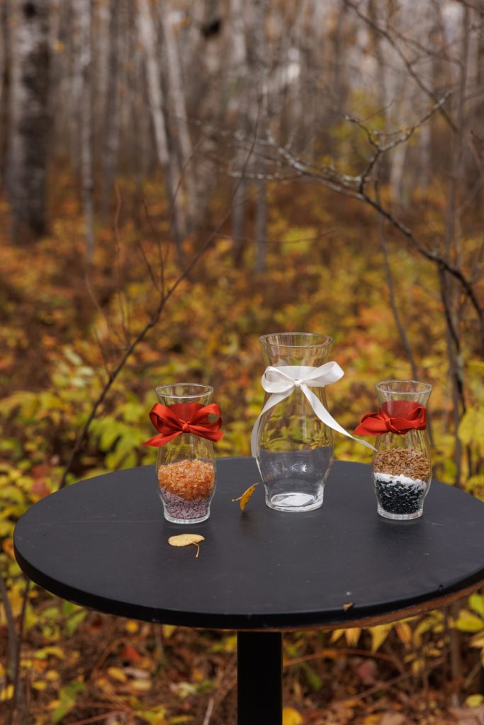 Congratulations Mary and Alex! What a perfect fall wedding day. We adore this couple! Ivy Black is one of our favorite wedding venues, located just outside of Duluth, Minnesota. The day started with laughter with the bridesmaids and groomsmen, they had separate getting ready rooms. The bridal room is on the second level and it is perfect for those first beautiful moments with the bride. After the “first look” we had fun around the fabulous property taking photos. The ceremony was among the falling leaves in the forest, it was stunning! Ivy Black was decked out with gorgeous decorations and fresh flowers. Black Woods Catering provided a delicious charcuterie board to feed hundreds of guests. Mary surprised Alex with a personal grand march announcement from the voice of the Viking, Alan Roach! The dance was so much fun with Sounds Unlimited DJ. Enjoy the videography by Bethany and the photography by Beau, AMAZING memories!