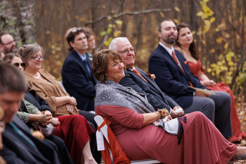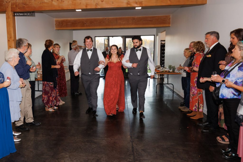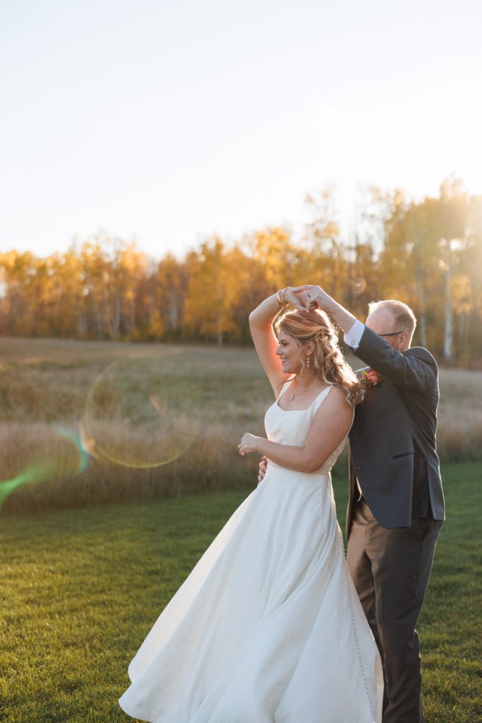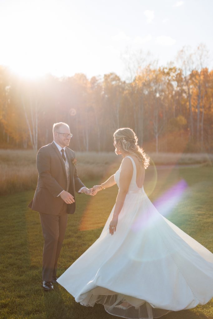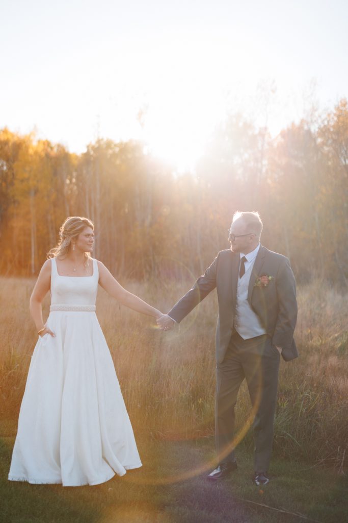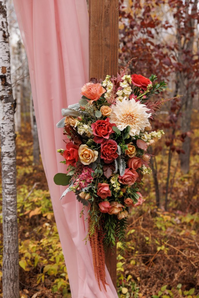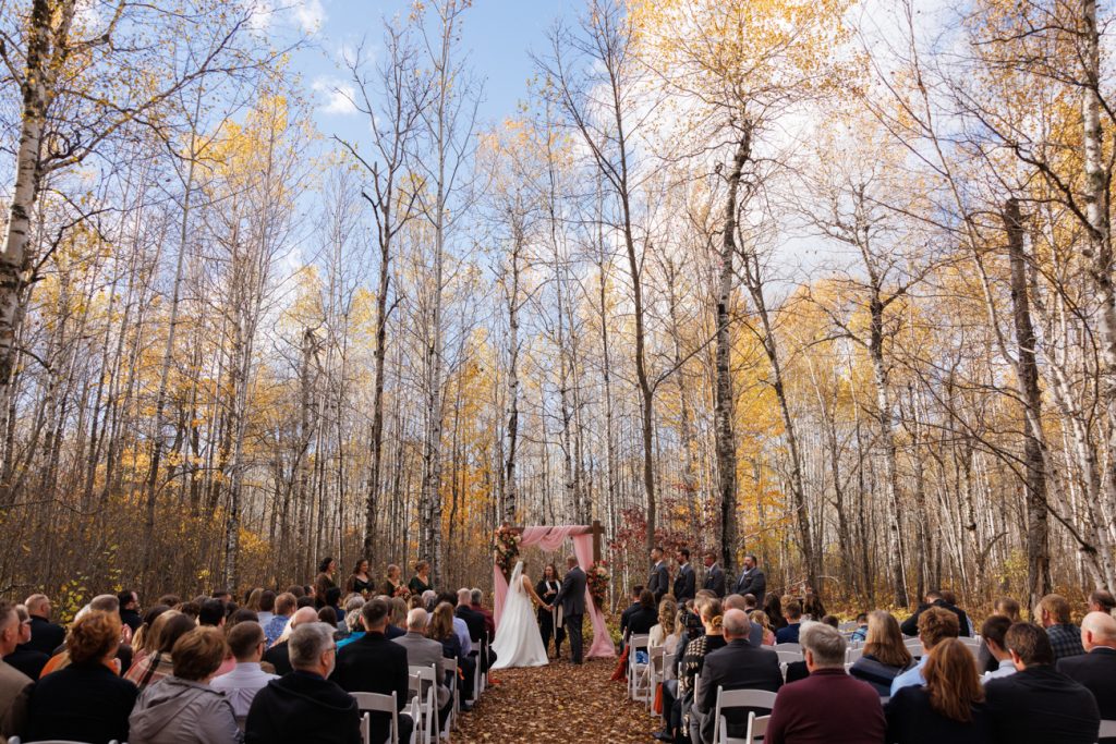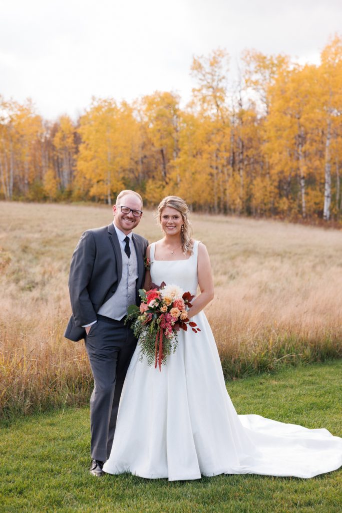 Congratulations Mary and Alex! What a perfect fall wedding day. We adore this couple! Ivy Black is one of our favorite wedding venues, located just outside of Duluth, Minnesota. The day started with laughter with the bridesmaids and groomsmen, they had separate getting ready rooms. The bridal room is on the second level and it is perfect for those first beautiful moments with the bride. After the “first look” we had fun around the fabulous property taking photos. The ceremony was among the falling leaves in the forest, it was stunning! Ivy Black was decked out with gorgeous decorations and fresh flowers. Black Woods Catering provided a delicious charcuterie board to feed hundreds of guests. Mary surprised Alex with a personal grand march announcement from the voice of the Viking, Alan Roach! The dance was so much fun with Sounds Unlimited DJ. Enjoy the videography by Bethany and the photography by Beau, AMAZING memories!