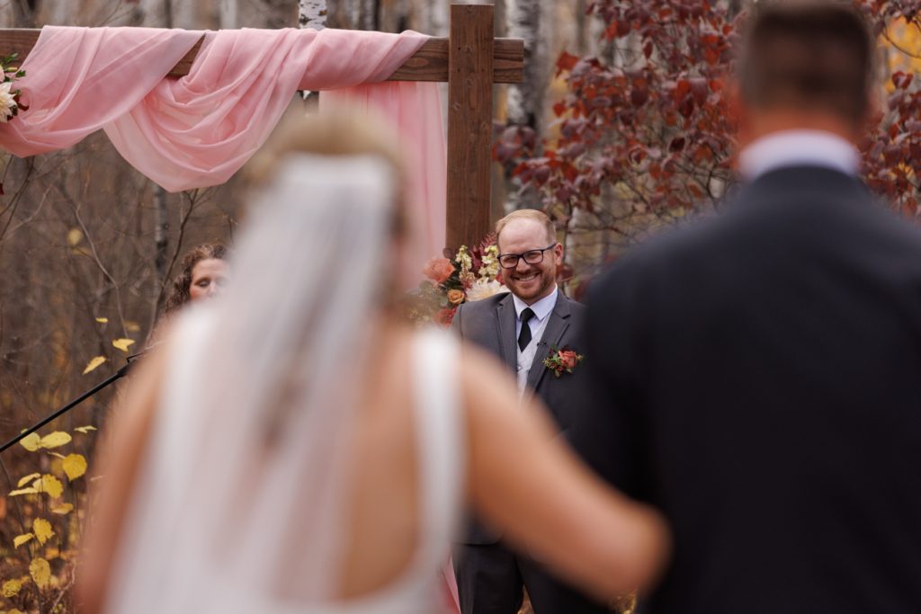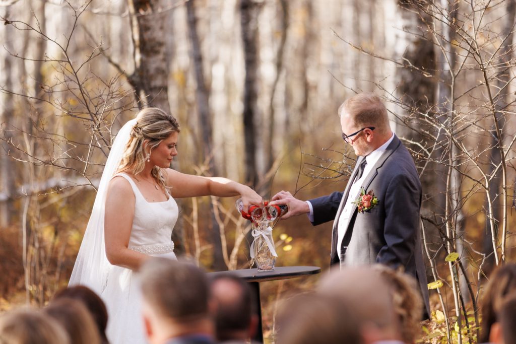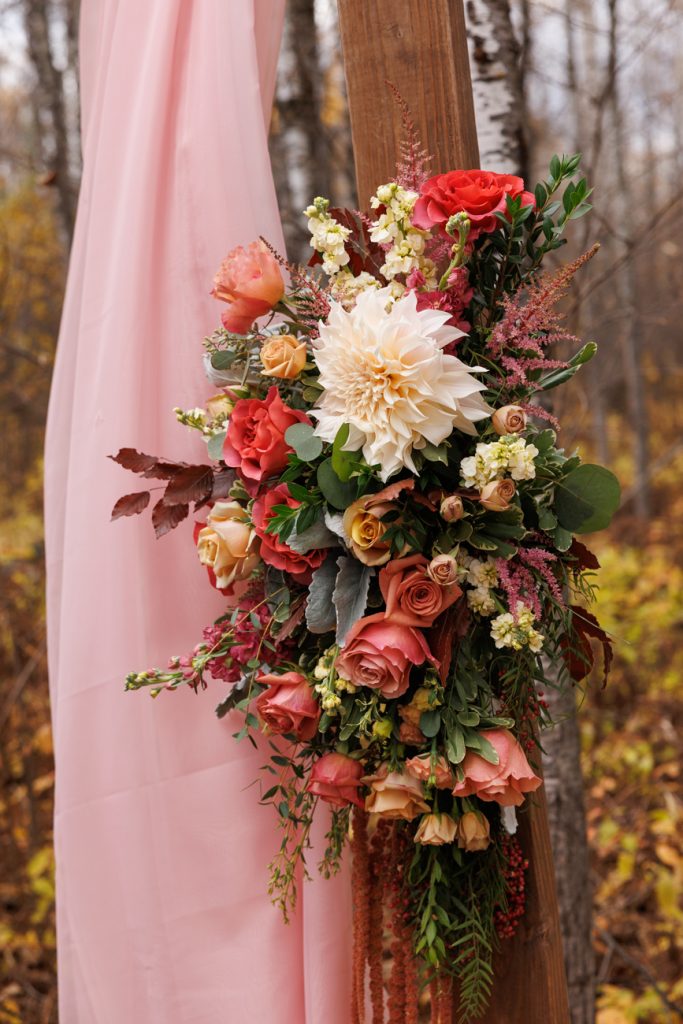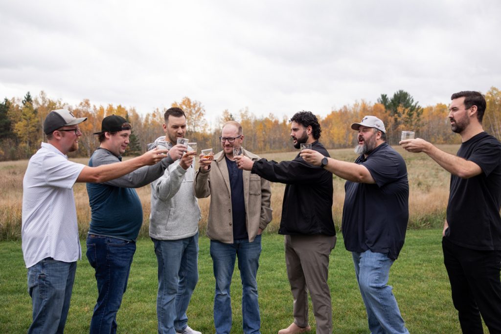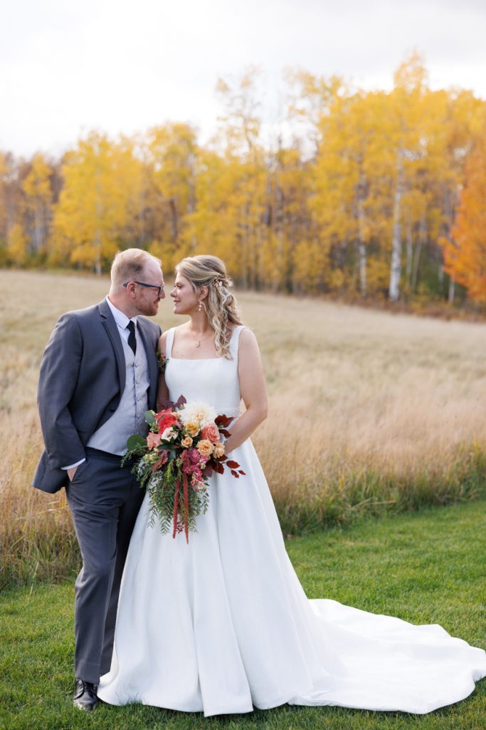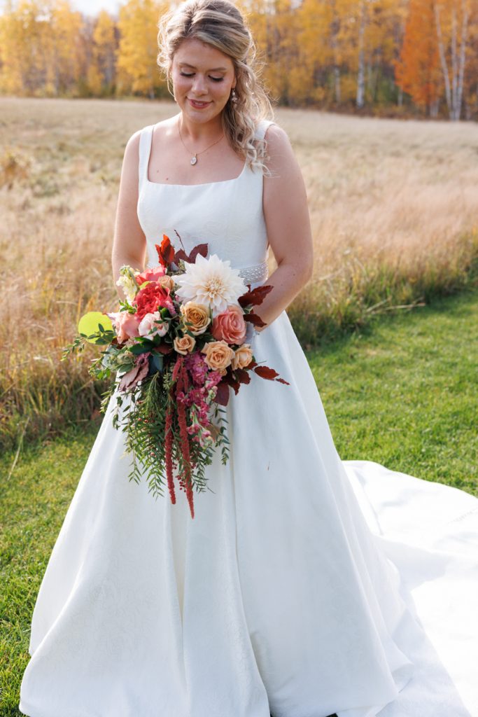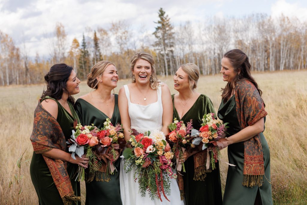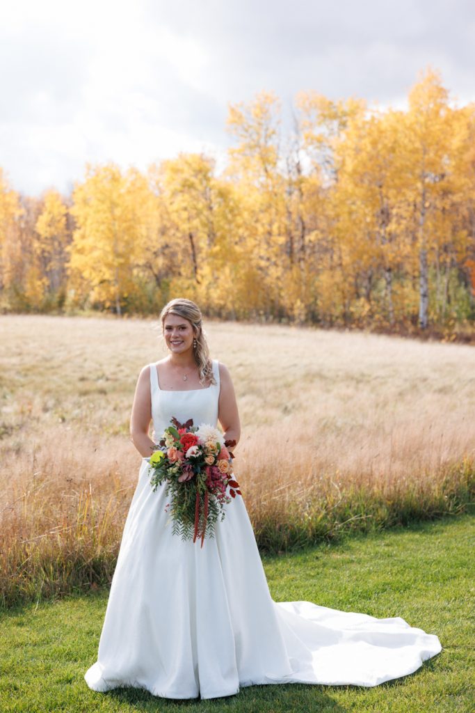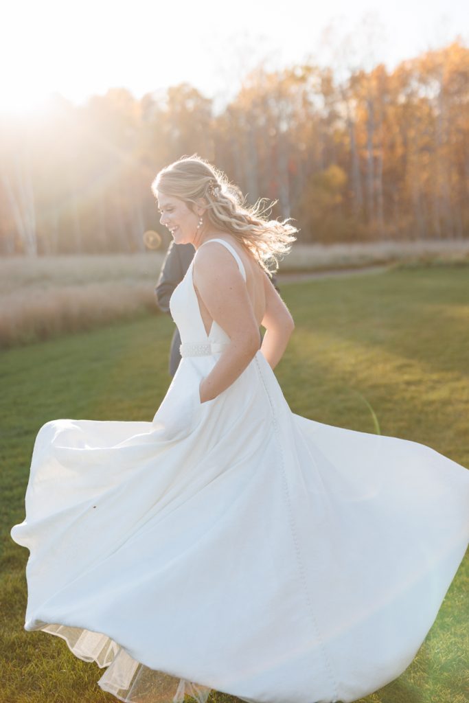 Congratulations Mary and Alex! What a perfect fall wedding day. We adore this couple! Ivy Black is one of our favorite wedding venues, located just outside of Duluth, Minnesota. The day started with laughter with the bridesmaids and groomsmen, they had separate getting ready rooms. The bridal room is on the second level and it is perfect for those first beautiful moments with the bride. After the “first look” we had fun around the fabulous property taking photos. The ceremony was among the falling leaves in the forest, it was stunning! Ivy Black was decked out with gorgeous decorations and fresh flowers. Black Woods Catering provided a delicious charcuterie board to feed hundreds of guests. Mary surprised Alex with a personal grand march announcement from the voice of the Viking, Alan Roach! The dance was so much fun with Sounds Unlimited DJ. Enjoy the videography by Bethany and the photography by Beau, AMAZING memories!