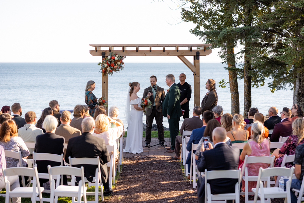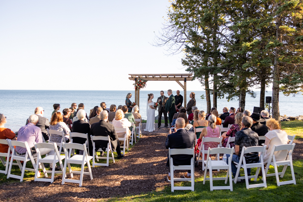 Congratulations Randi and Matt! What a beautiful wedding day at Larsmont Cottages on Lake Superior. We love weddings at Larsmont! Lake Superior is the perfect backdrop for a wedding ceremony. Larsmont Cottages is an amazing destination wedding venue!