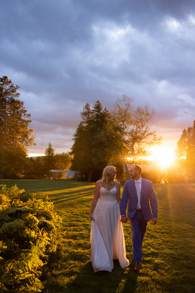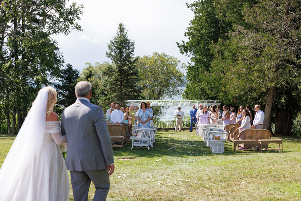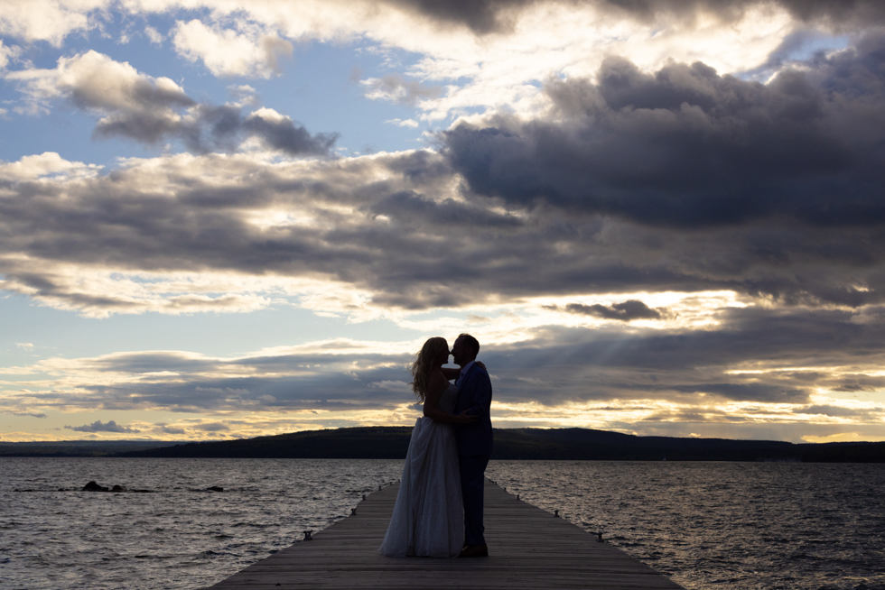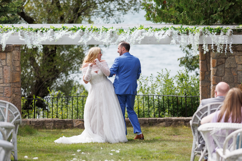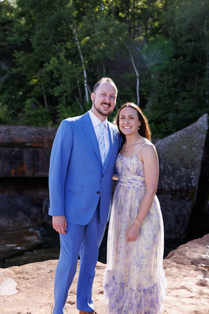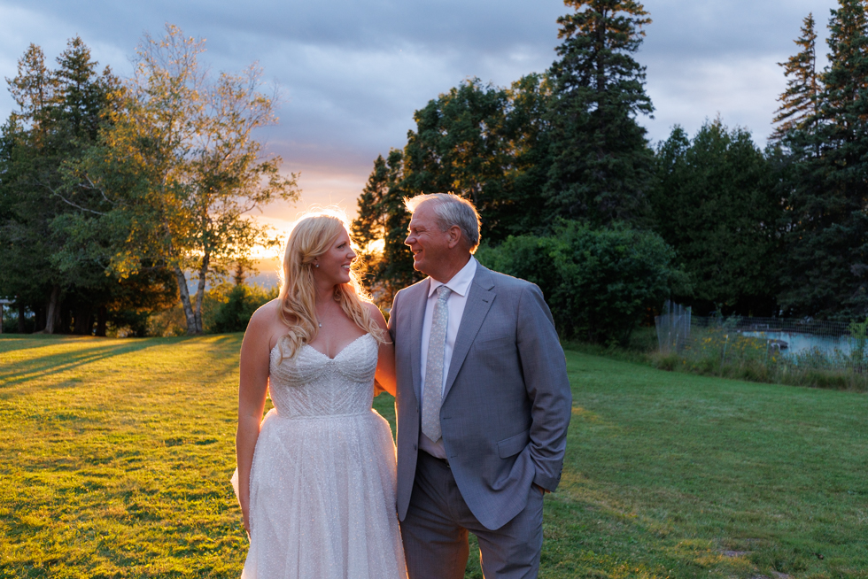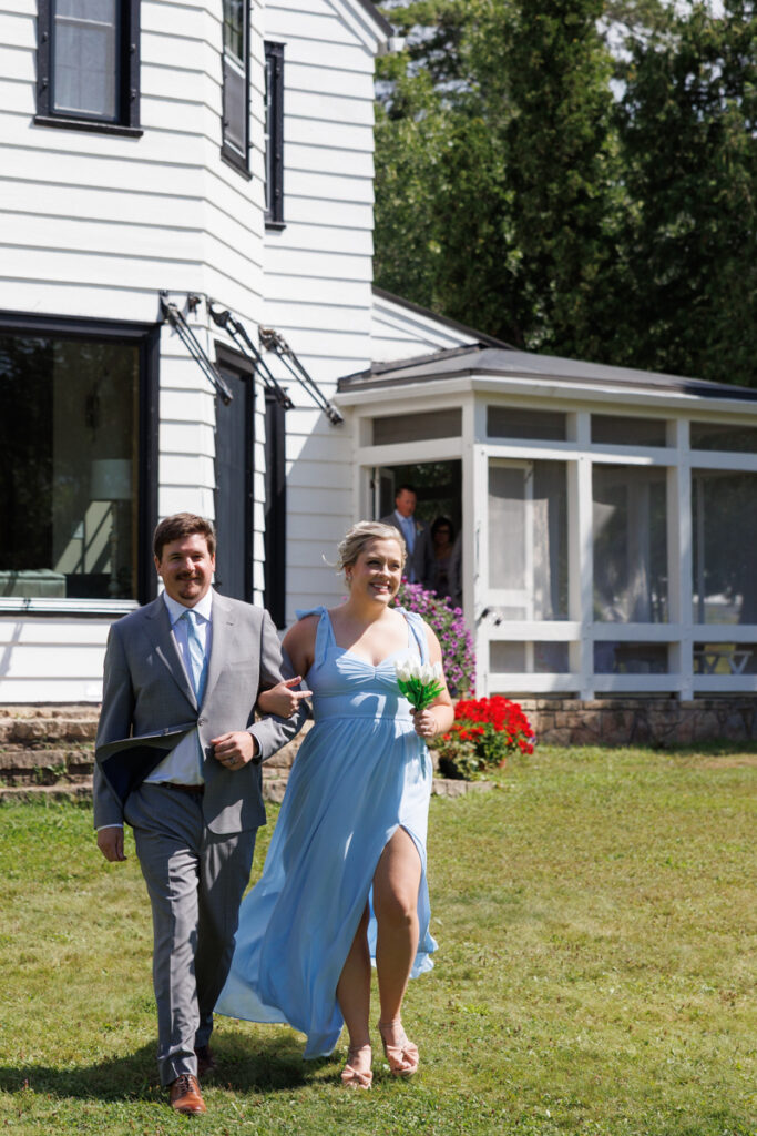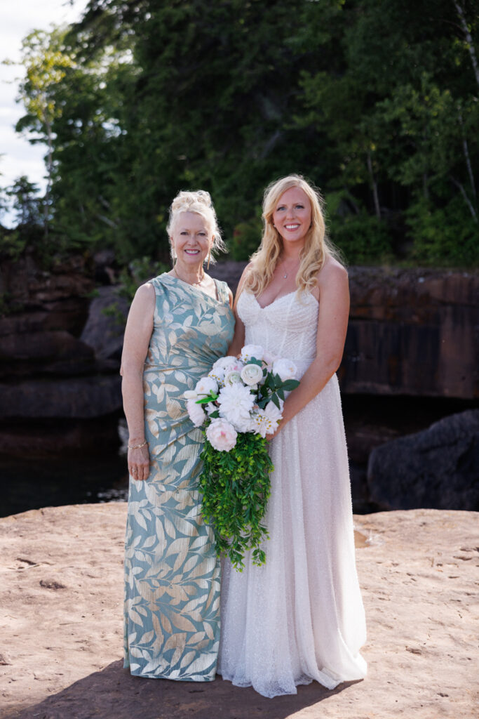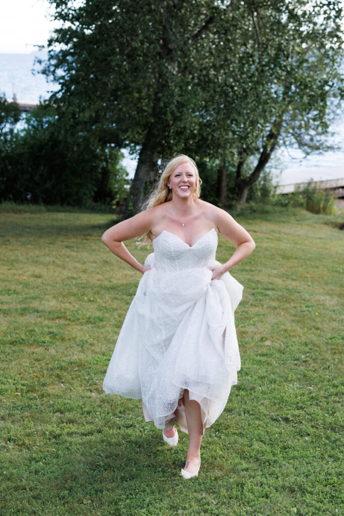 Congratulations Sarah and Max! What a fabulous destination wedding at Island Estate on Madeline Island. We started off the day taking the ferry from Bayfield to LaPointe, WI. As we pulled into the driveway of Island Estate we were greeted by the groom. There was energetic music playing throughout the house while the wedding party got ready. Max got ready in the game room and Sarah got ready in a bright airy guest room upstairs. The first look was as Sarah walked down the aisle in the backyard, a beautiful waterfront ceremony was set for the scene. The bride and groom said “I do” with a secret handshake!! After the ceremony champagne was popped and toasts were made… then we headed off to the state park for some Lake Superior cliff photos with the whole group. The reception continued with a cocktail hour back at Island Estate. Catering was by Fat Radish, so yummy. After dinner there was a fabulous sunset!! Everyone went inside for more speeches and then we ended the day with a fabulous dance. Enjoy the photos and video to remember the day.