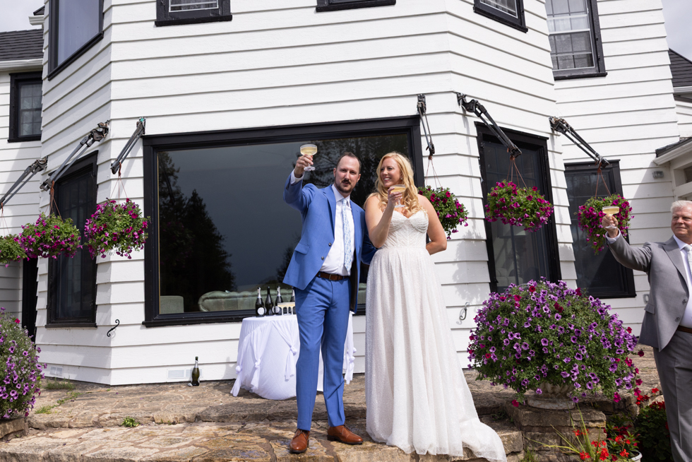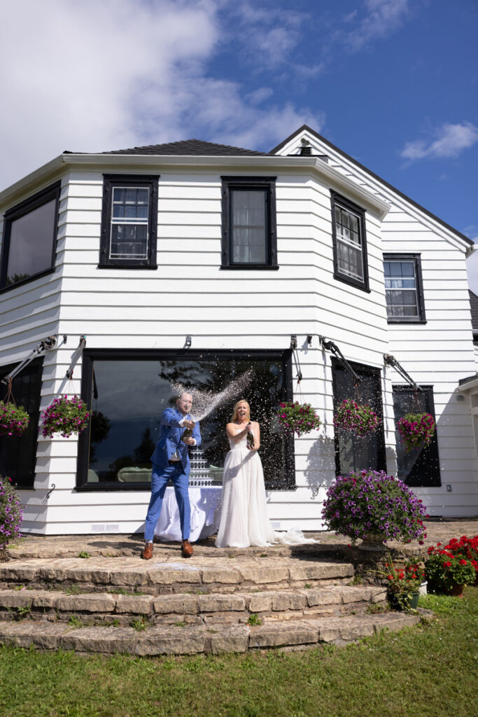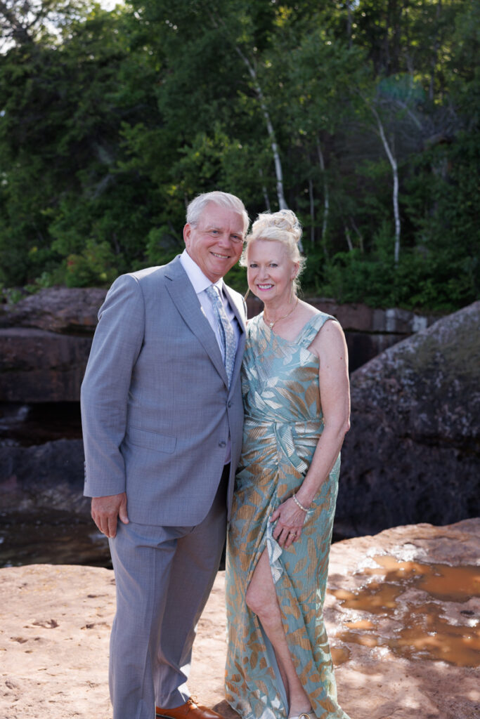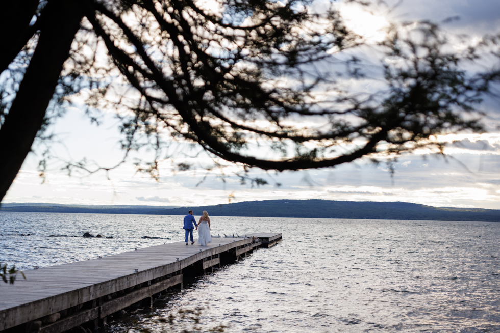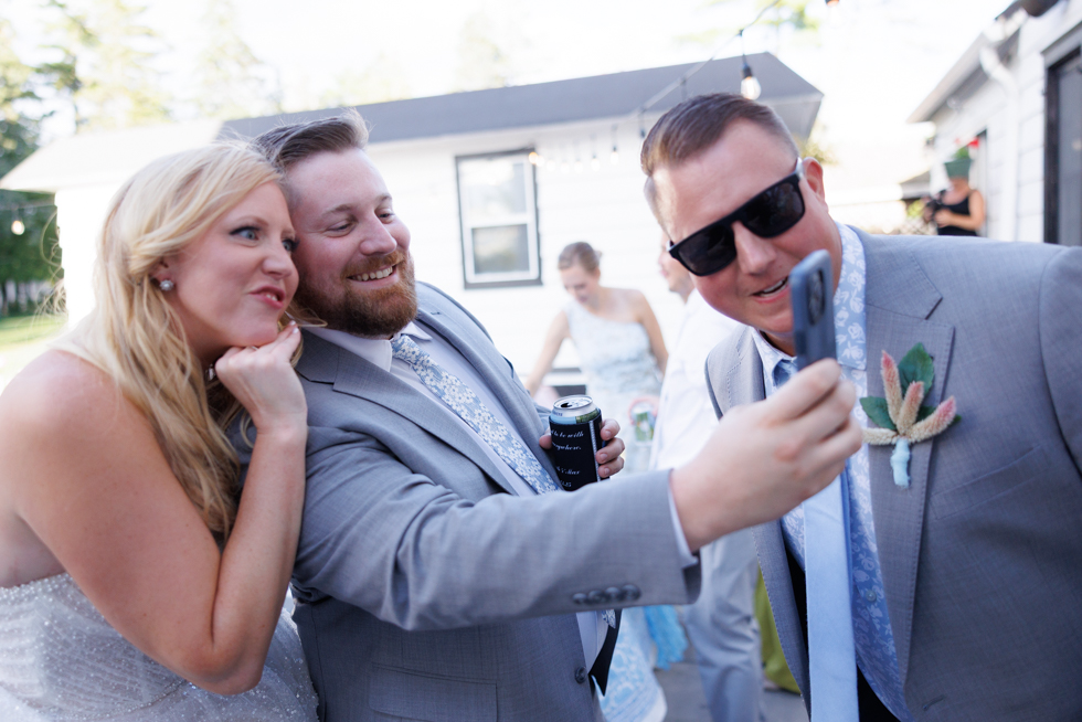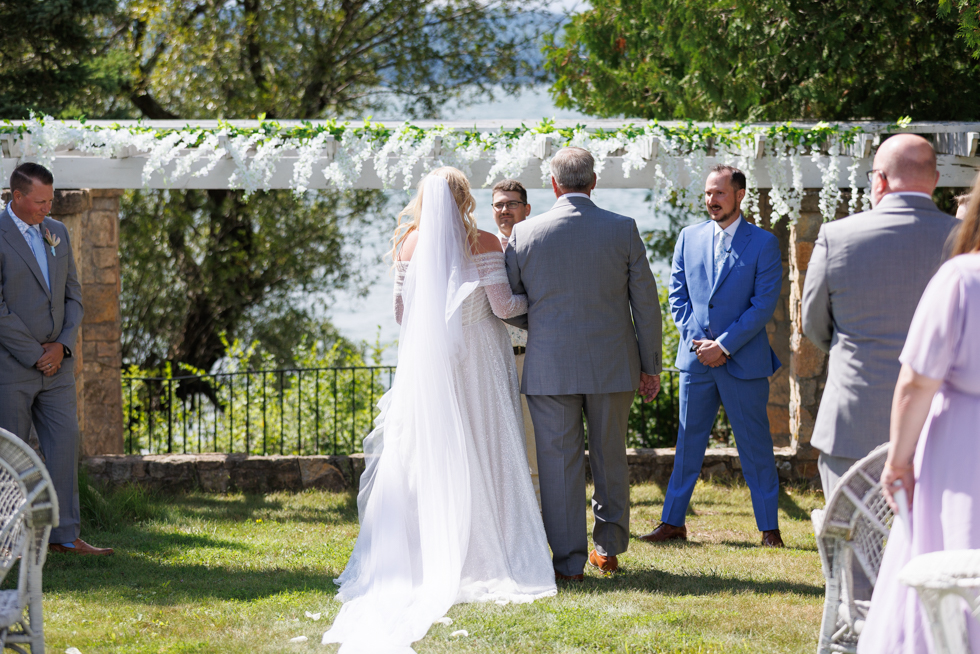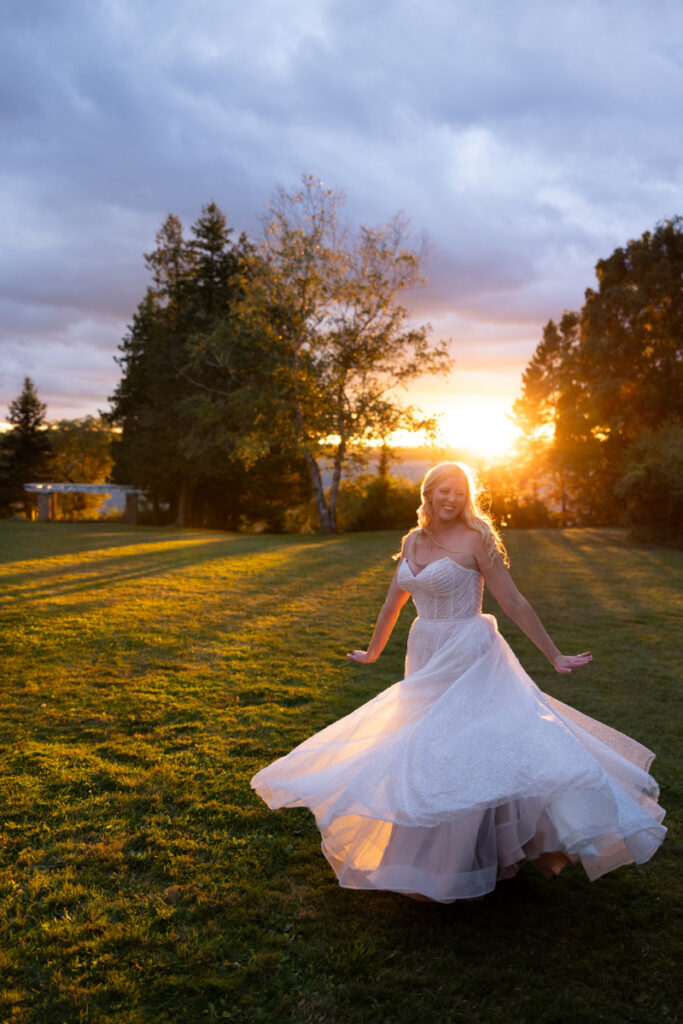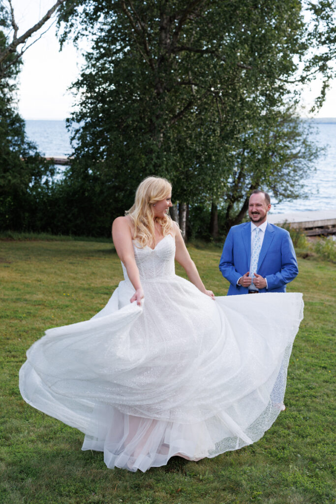 Congratulations Sarah and Max! What a fabulous destination wedding at Island Estate on Madeline Island. We started off the day taking the ferry from Bayfield to LaPointe, WI. As we pulled into the driveway of Island Estate we were greeted by the groom. There was energetic music playing throughout the house while the wedding party got ready. Max got ready in the game room and Sarah got ready in a bright airy guest room upstairs. The first look was as Sarah walked down the aisle in the backyard, a beautiful waterfront ceremony was set for the scene. The bride and groom said “I do” with a secret handshake!! After the ceremony champagne was popped and toasts were made… then we headed off to the state park for some Lake Superior cliff photos with the whole group. The reception continued with a cocktail hour back at Island Estate. Catering was by Fat Radish, so yummy. After dinner there was a fabulous sunset!! Everyone went inside for more speeches and then we ended the day with a fabulous dance. Enjoy the photos and video to remember the day.