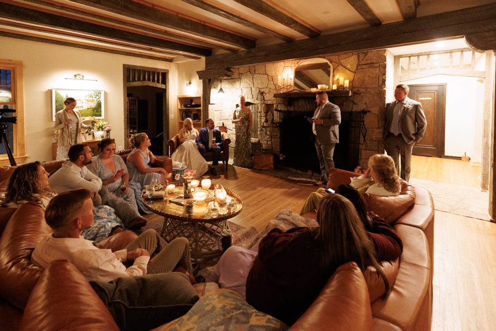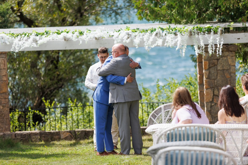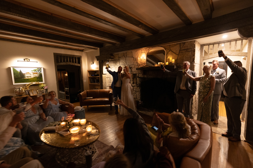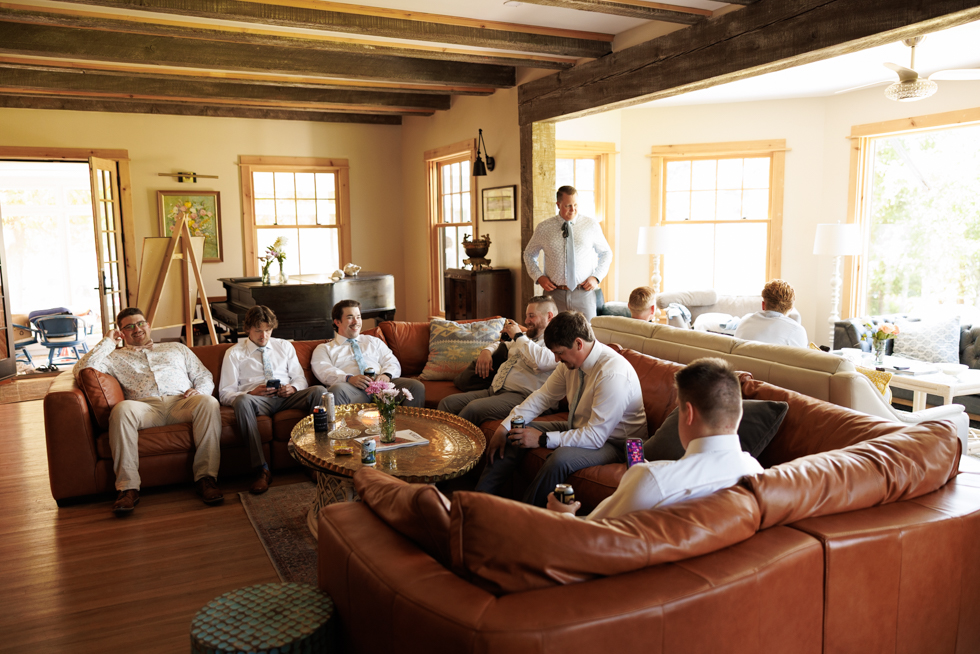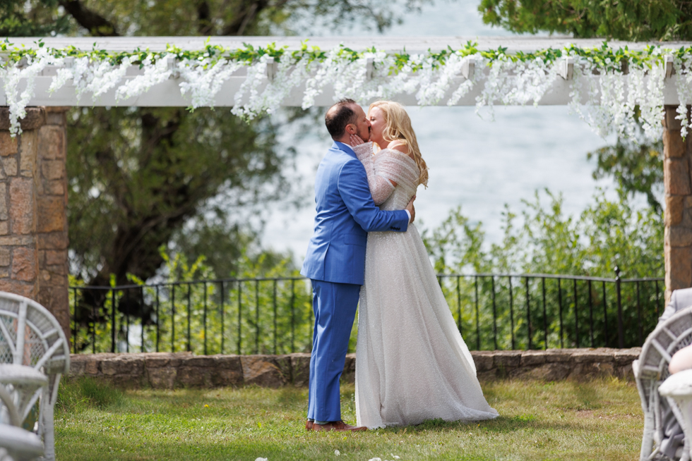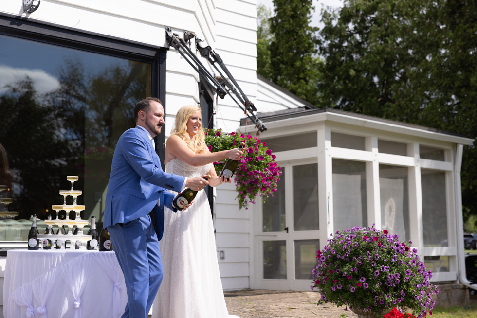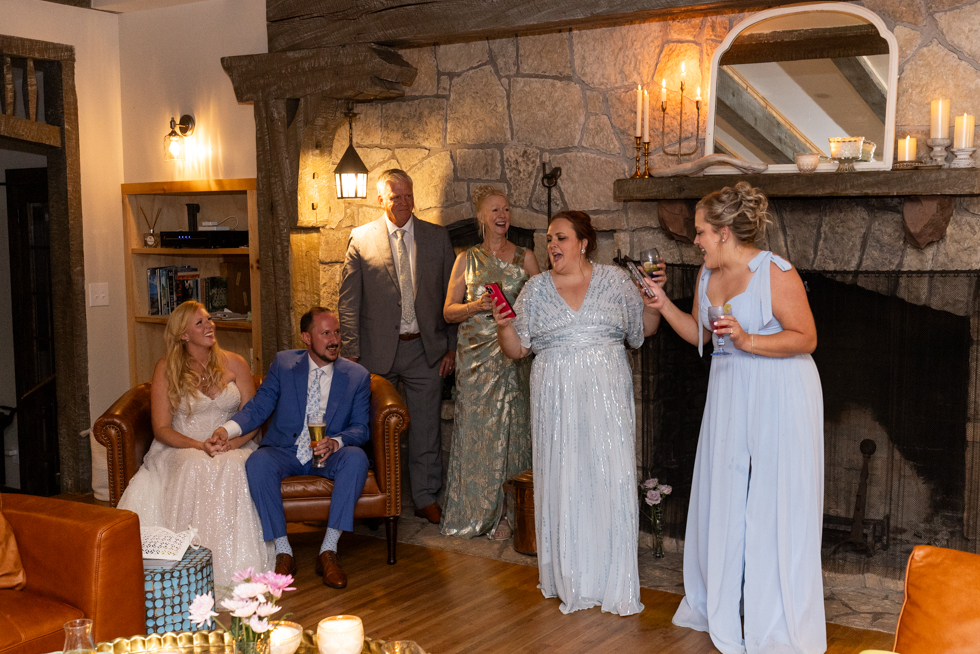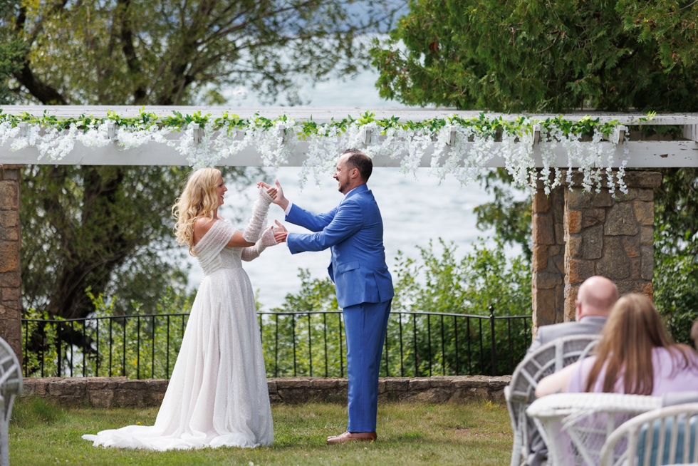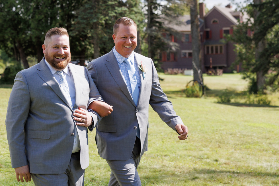 Congratulations Sarah and Max! What a fabulous destination wedding at Island Estate on Madeline Island. We started off the day taking the ferry from Bayfield to LaPointe, WI. As we pulled into the driveway of Island Estate we were greeted by the groom. There was energetic music playing throughout the house while the wedding party got ready. Max got ready in the game room and Sarah got ready in a bright airy guest room upstairs. The first look was as Sarah walked down the aisle in the backyard, a beautiful waterfront ceremony was set for the scene. The bride and groom said “I do” with a secret handshake!! After the ceremony champagne was popped and toasts were made… then we headed off to the state park for some Lake Superior cliff photos with the whole group. The reception continued with a cocktail hour back at Island Estate. Catering was by Fat Radish, so yummy. After dinner there was a fabulous sunset!! Everyone went inside for more speeches and then we ended the day with a fabulous dance. Enjoy the photos and video to remember the day.