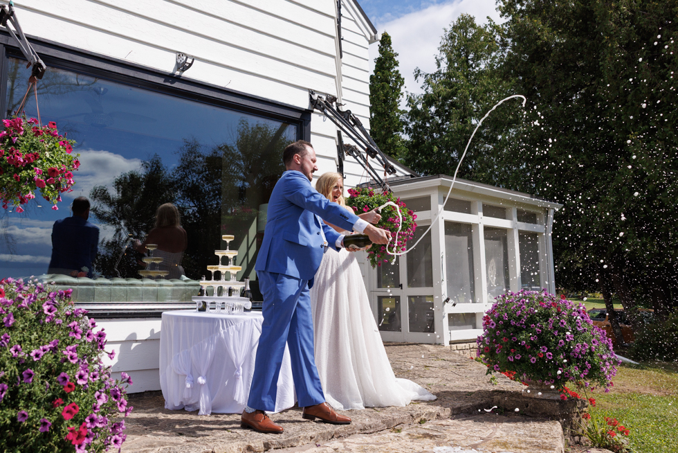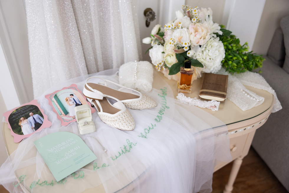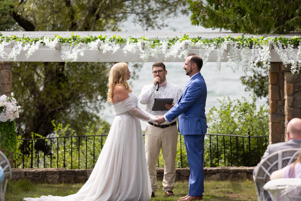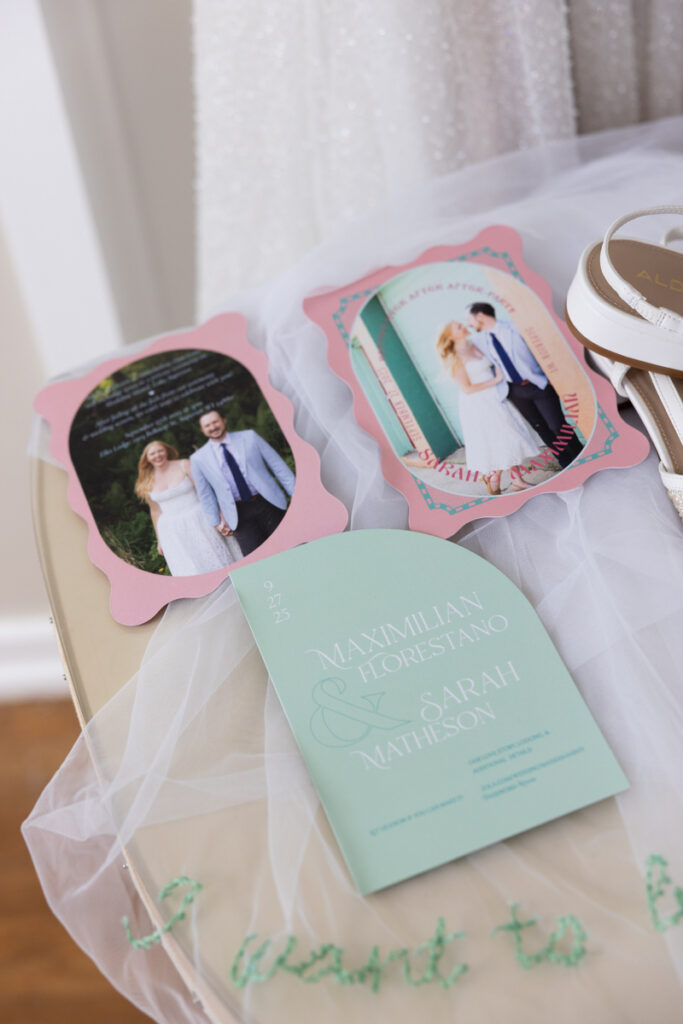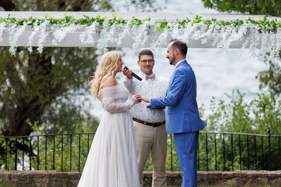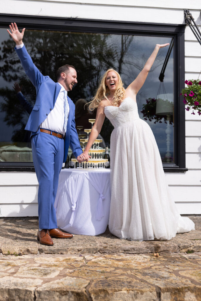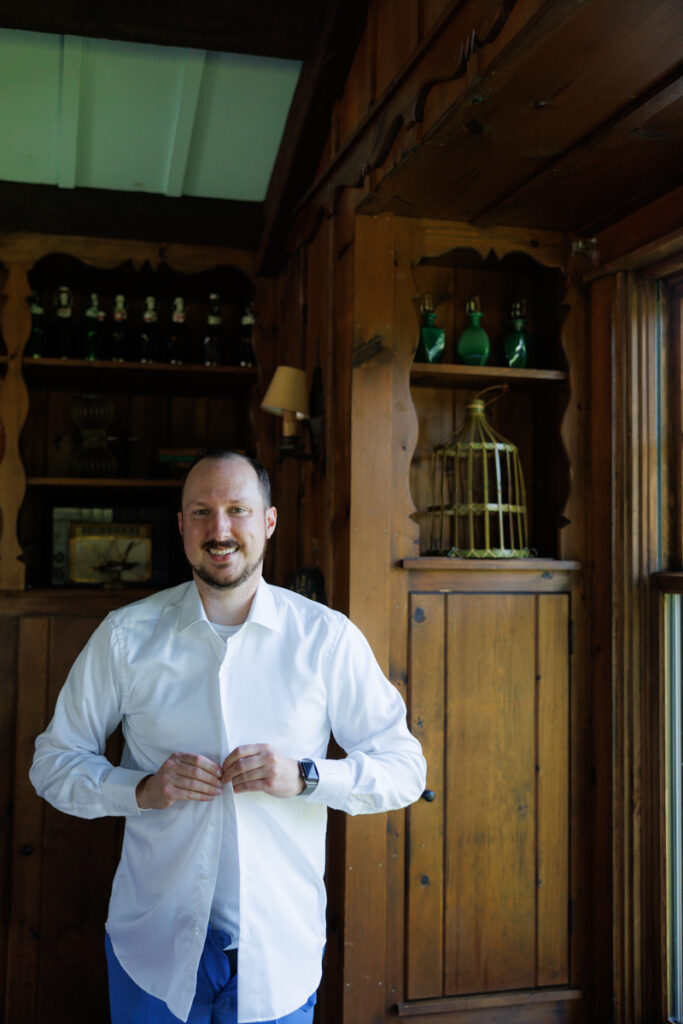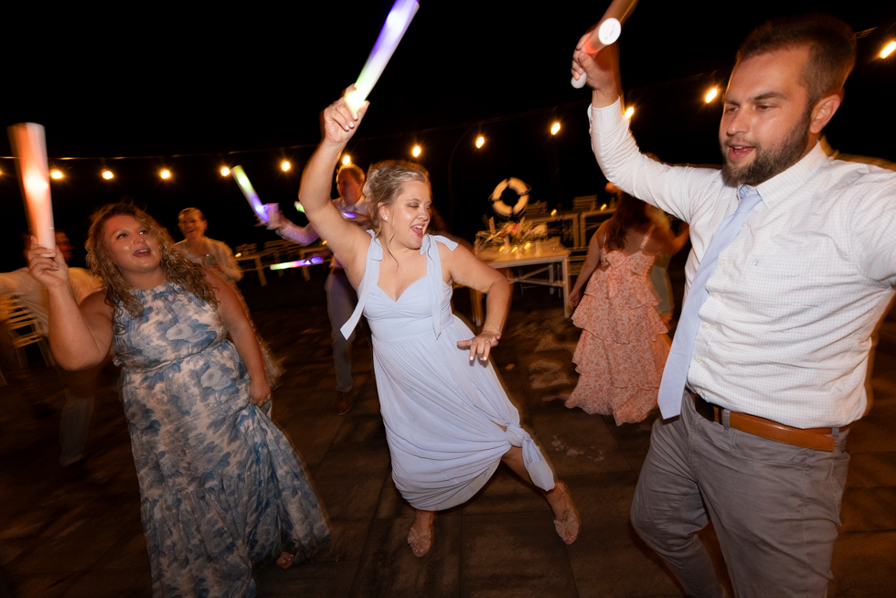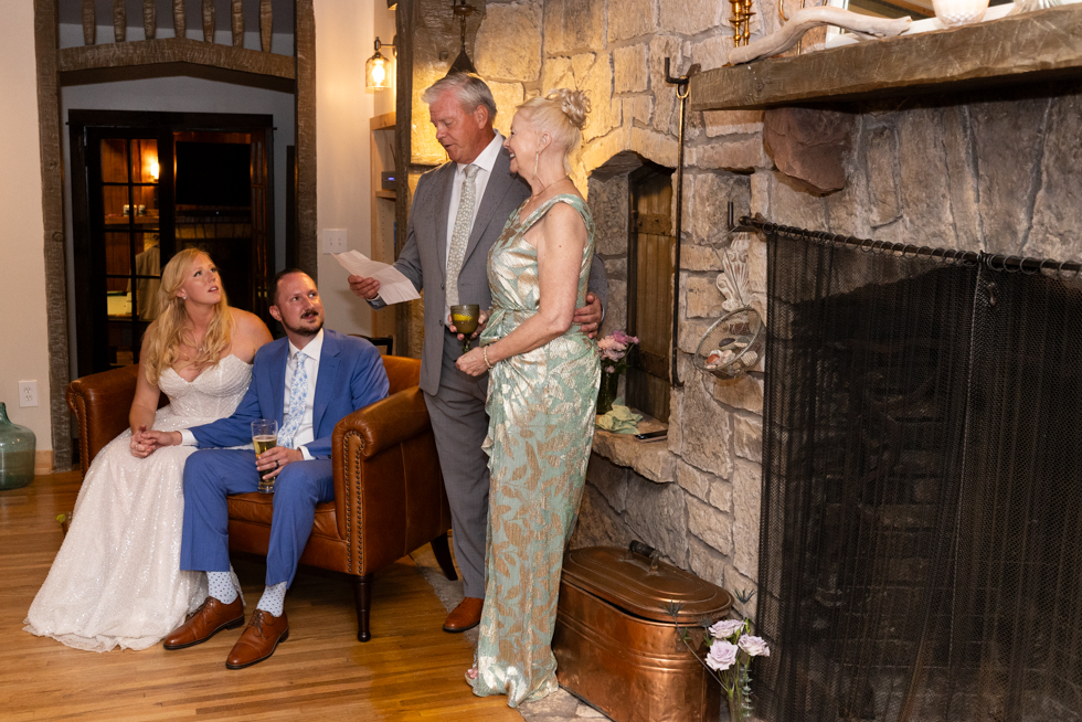 Congratulations Sarah and Max! What a fabulous destination wedding at Island Estate on Madeline Island. We started off the day taking the ferry from Bayfield to LaPointe, WI. As we pulled into the driveway of Island Estate we were greeted by the groom. There was energetic music playing throughout the house while the wedding party got ready. Max got ready in the game room and Sarah got ready in a bright airy guest room upstairs. The first look was as Sarah walked down the aisle in the backyard, a beautiful waterfront ceremony was set for the scene. The bride and groom said “I do” with a secret handshake!! After the ceremony champagne was popped and toasts were made… then we headed off to the state park for some Lake Superior cliff photos with the whole group. The reception continued with a cocktail hour back at Island Estate. Catering was by Fat Radish, so yummy. After dinner there was a fabulous sunset!! Everyone went inside for more speeches and then we ended the day with a fabulous dance. Enjoy the photos and video to remember the day.